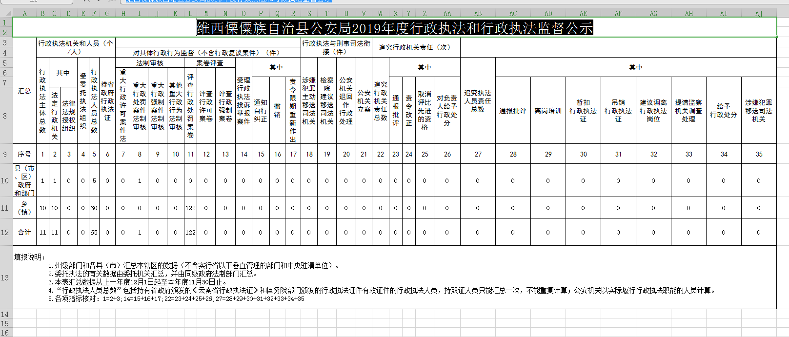 【信息公开】维西县自然资源局2019年行政执法监督工作汇总表