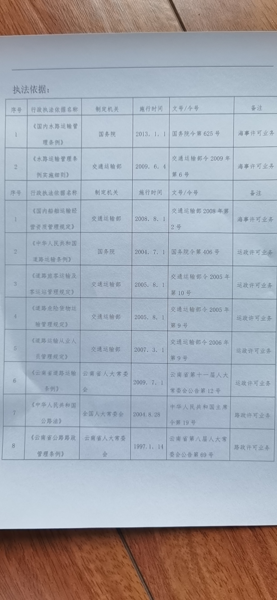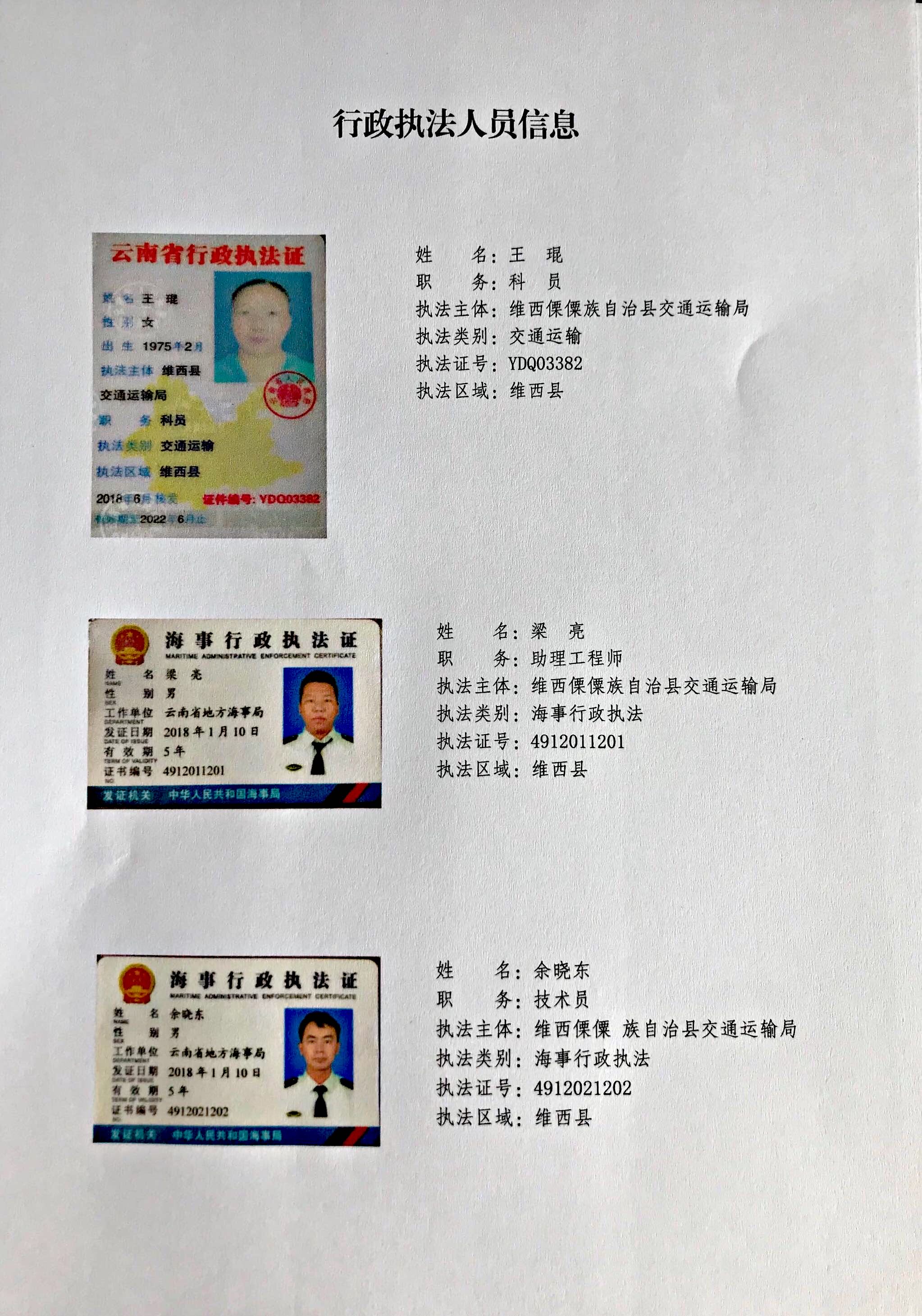 (一)行政执法机关全称:维西傈僳族自治县交通运输局