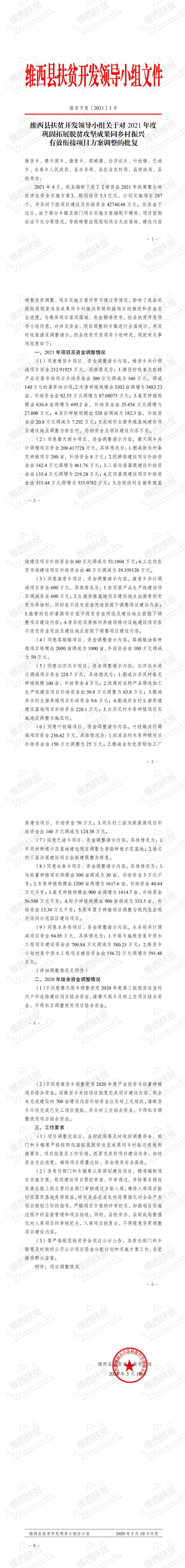 【扶贫项目资金公示】维西县扶贫开发领导小组关于对2021年度巩固拓展脱贫攻坚成果同乡村振兴有效衔接项目方案调整的批复