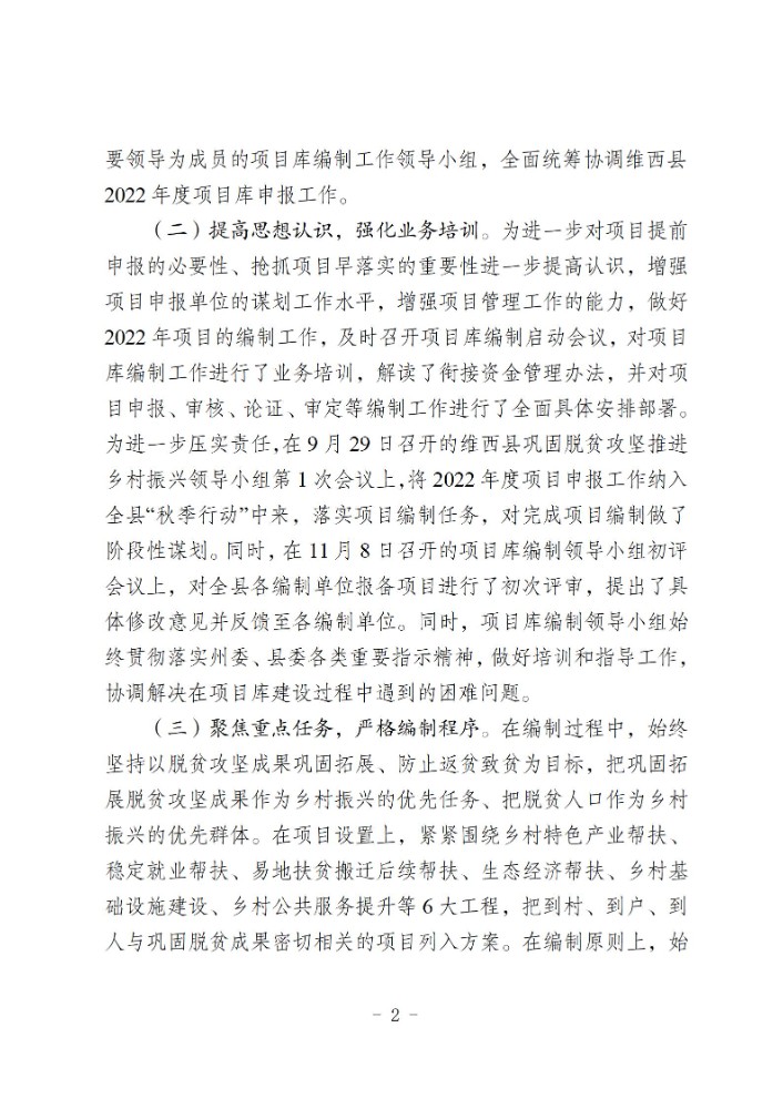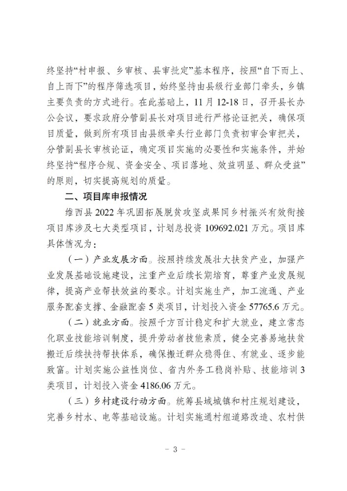维西县2022年巩固拓展脱贫攻坚成果同乡村振兴有效衔接项目库建库情况