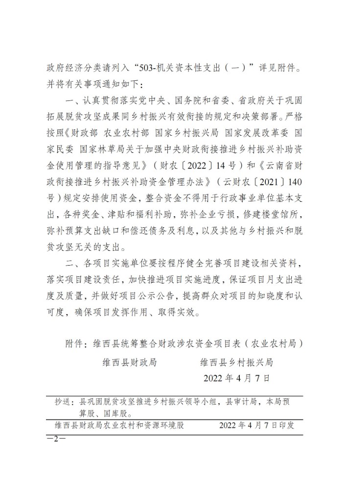 维西县财政局 维西县乡村振兴局关于下达第二批巩固拓展脱贫攻坚成果同乡村振兴有效衔接项目资金的通知