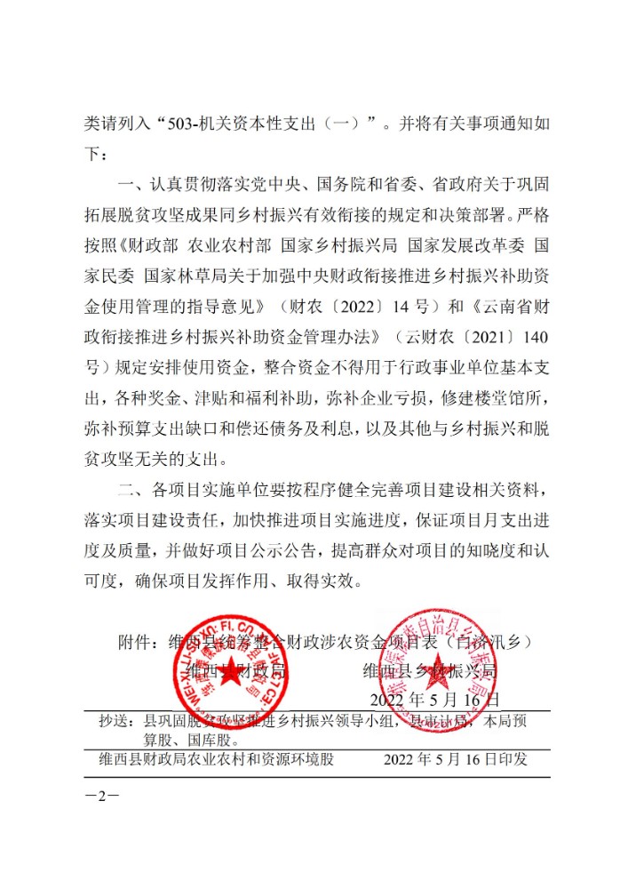维西县财政局 维西县乡村振兴局关于下达第四批巩固拓展脱贫攻坚成果同乡村振兴有效衔接项目资金的通知