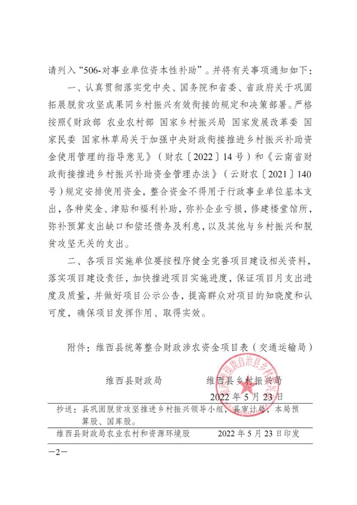 维西县财政局 维西县乡村振兴局关于下达第四批巩固拓展脱贫攻坚成果同乡村振兴有效衔接项目资金的通知