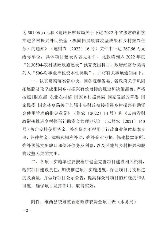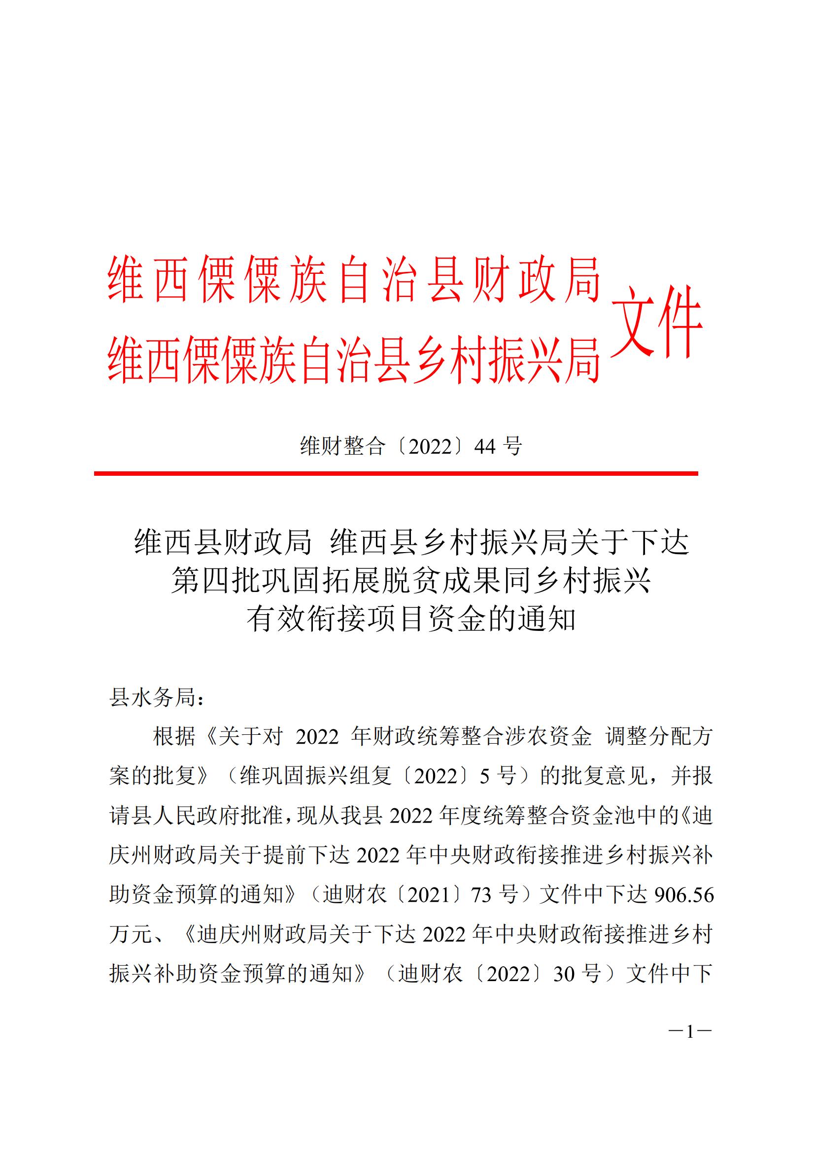 维西县财政局 维西县乡村振兴局关于下达第四批巩固拓展脱贫攻坚成果同乡村振兴有效衔接项目资金的通知