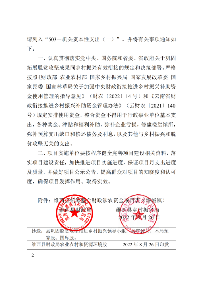 维西县财政局 维西县乡村振兴局关于下达第五批巩固拓展脱贫攻坚成果同乡村振兴有效衔接项目资金的通知