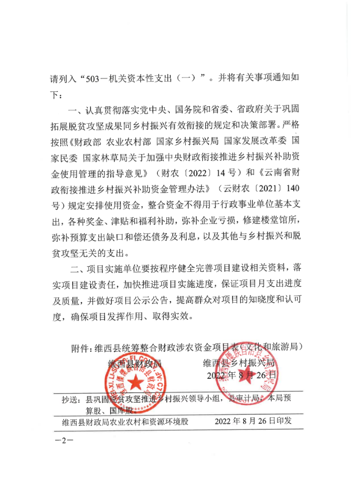 维西县财政局 维西县乡村振兴局关于下达第五批巩固拓展脱贫攻坚成果同乡村振兴有效衔接项目资金的通知