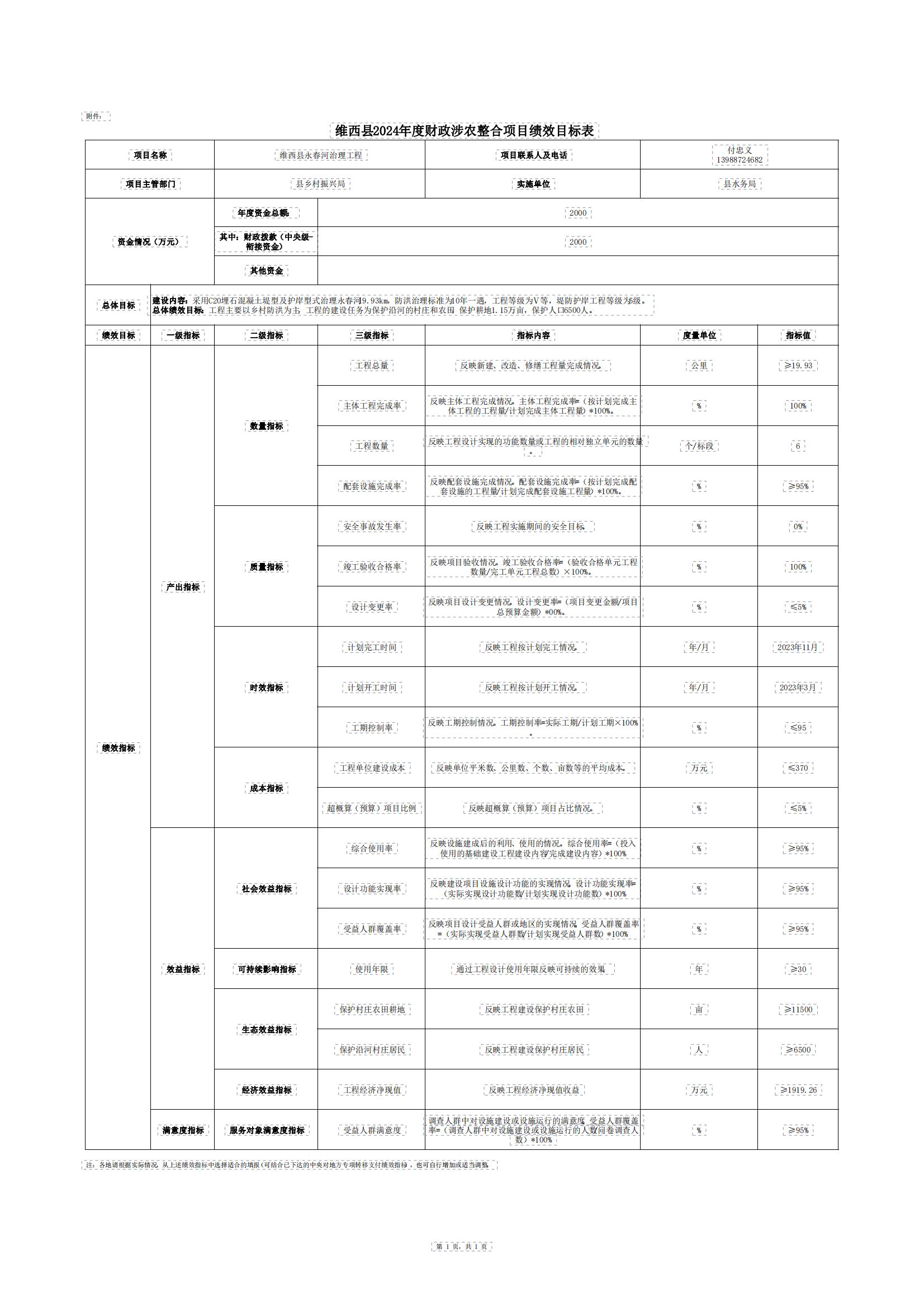 附件1:维西县2023年涉农整合项目资金绩效目标表(永春河).xlsx