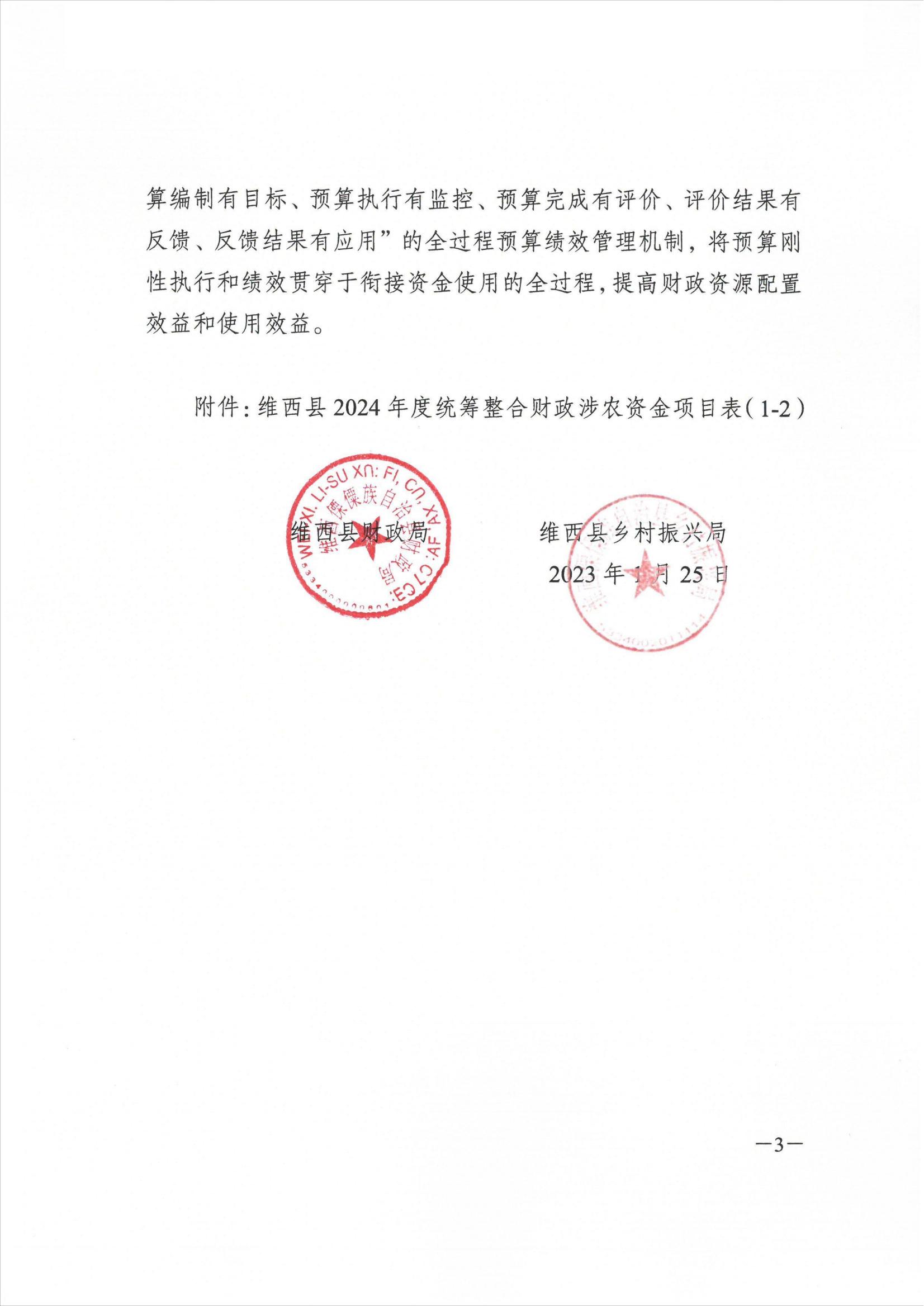 关于下达维西县2024年度巩固拓展脱贫攻坚成果和乡村振兴项目计划通知的公告