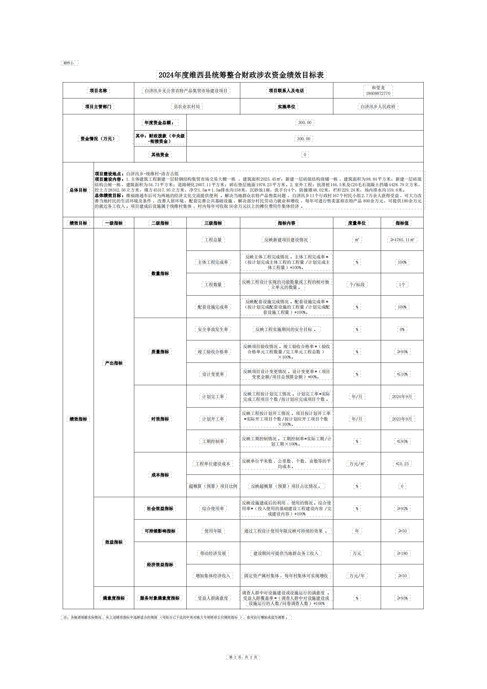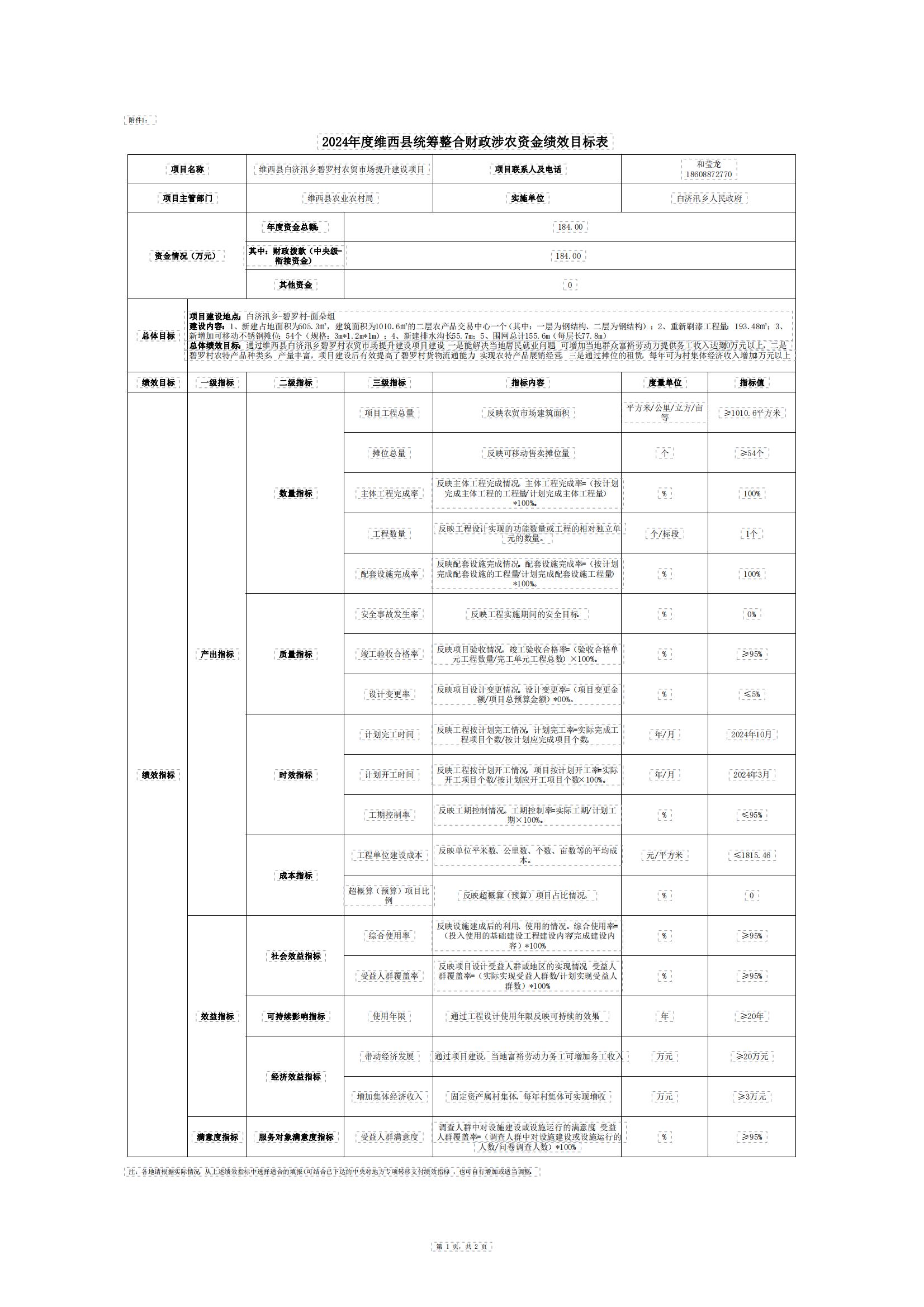 附件1:维西县2023年涉农整合项目资金绩效目标表(碧罗农贸市场).xls