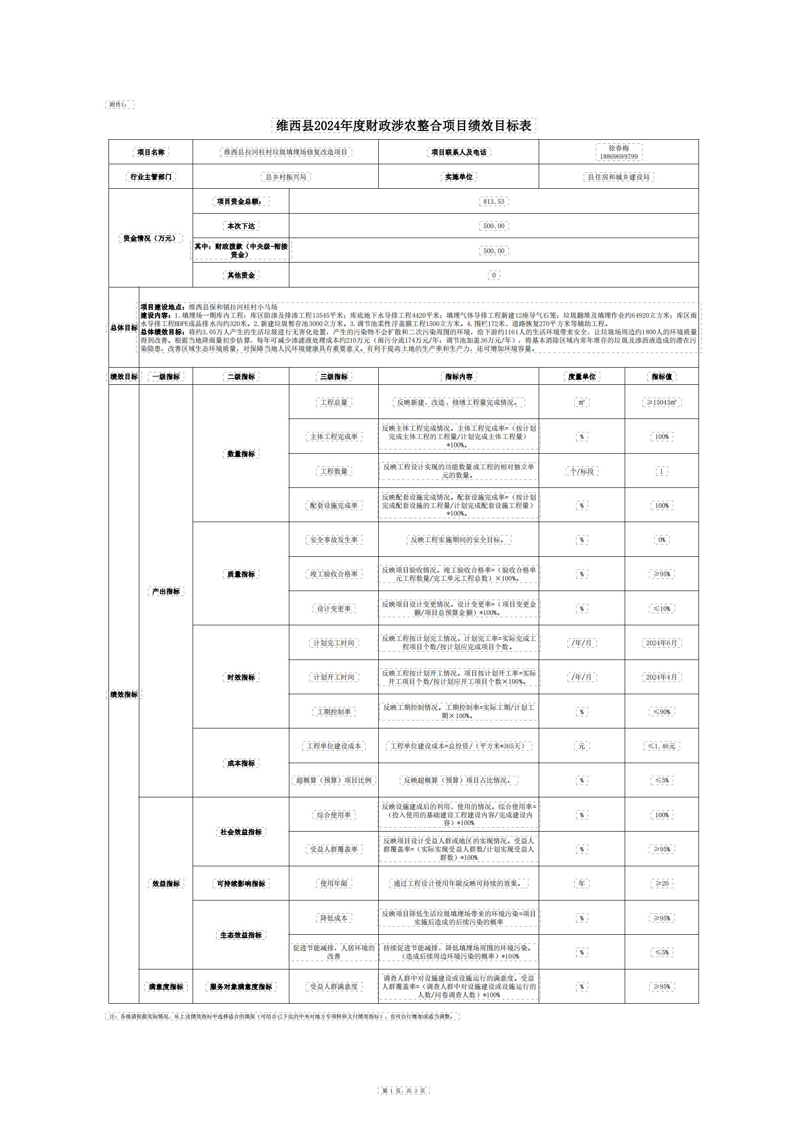 维西县拉河柱村垃圾填埋场修复改造项目绩效目标表2024-2-28.xlsx