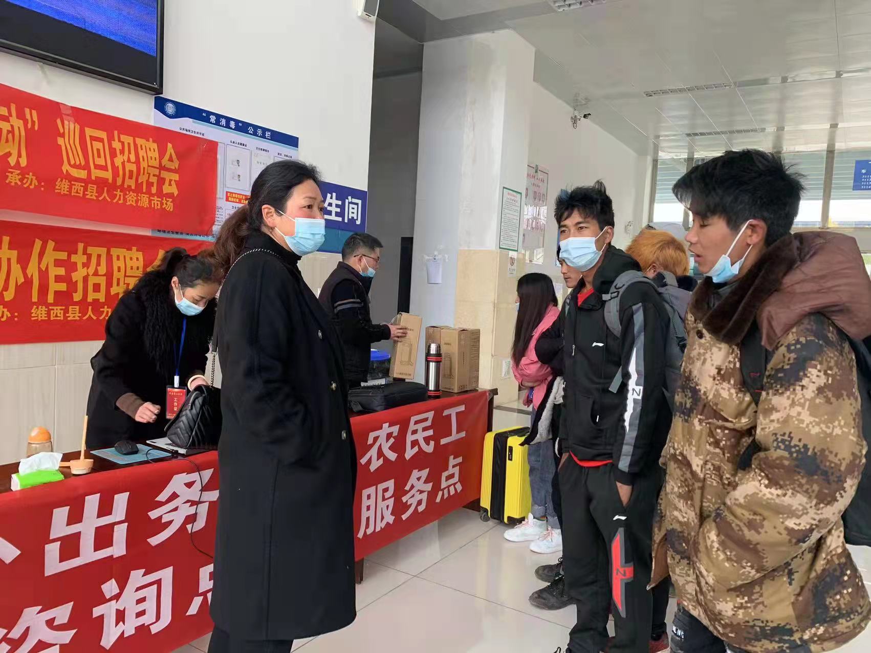 维西县人社工作人员在客运站为外出务工人员提供就业服务
