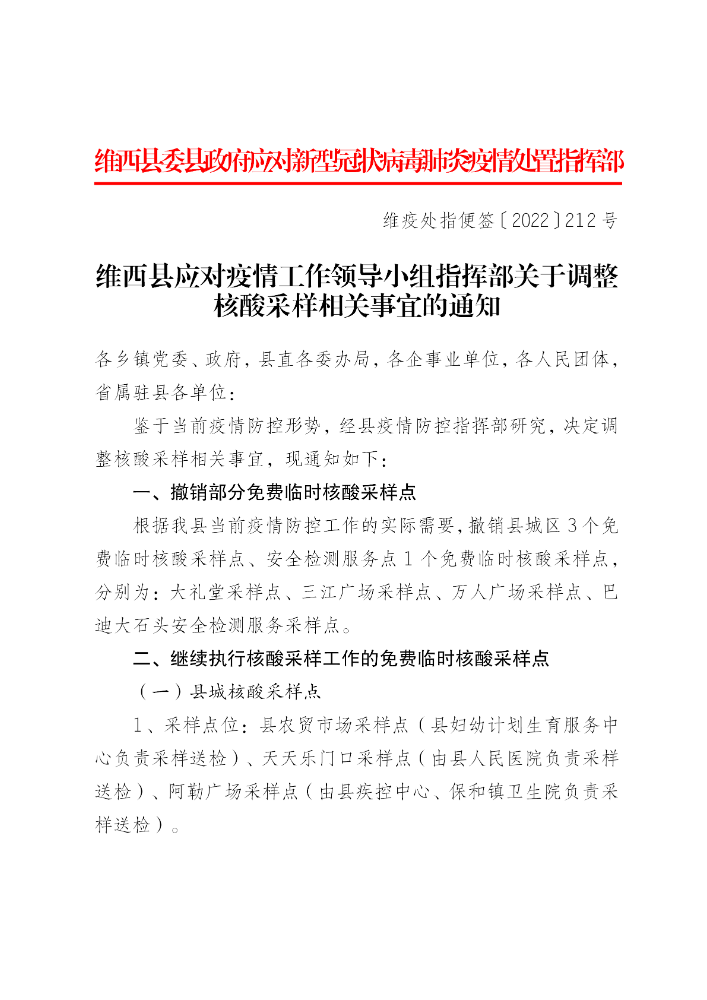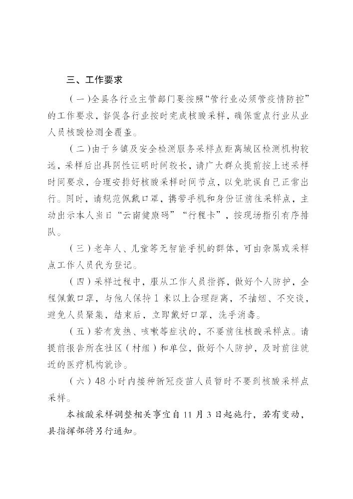 关于调整核酸采样相关事宜的通知
