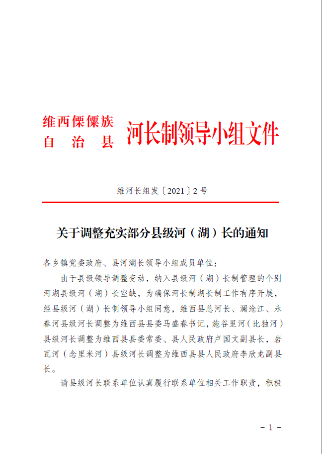维西县水务局关于永春河 腊普河流域(巡河护河员)管理事项的通知