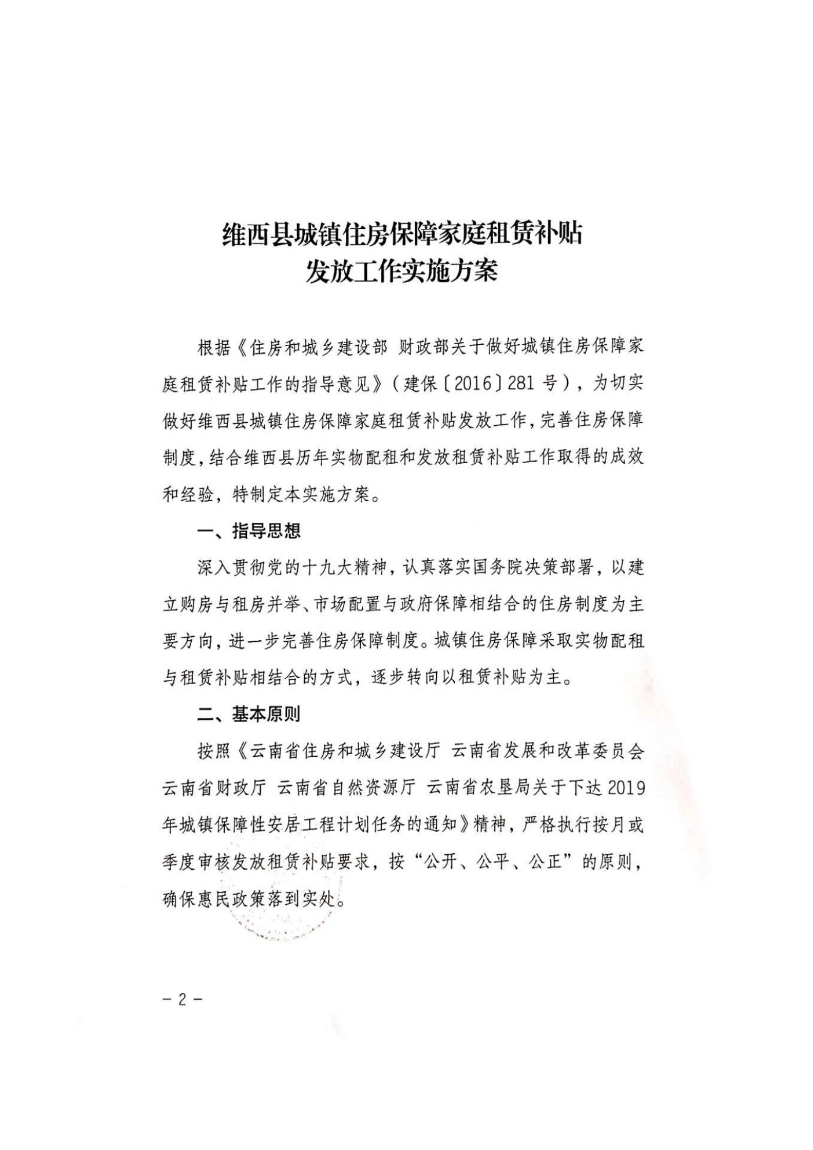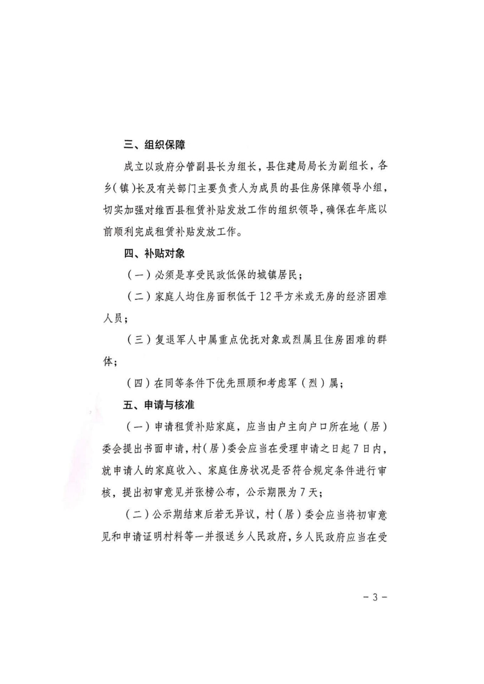 【维政办发】关于印发《维西县城镇住房保障家庭租赁补贴发放工作实施方案》的通知