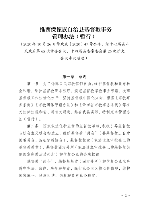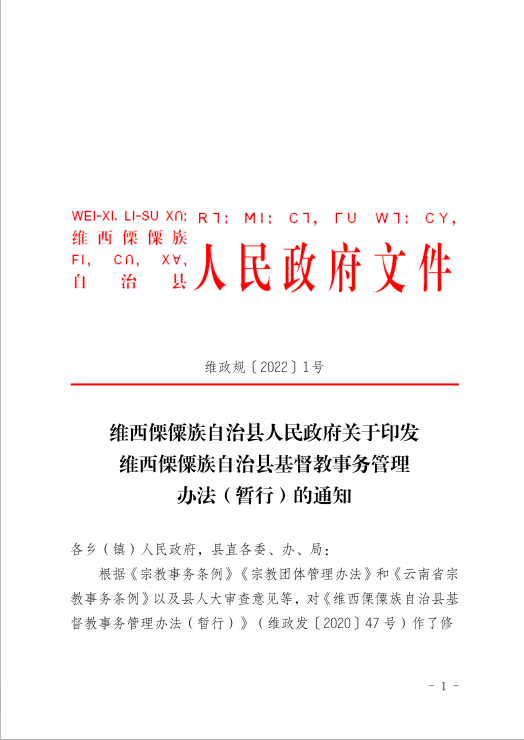 维西傈僳族自治县人民政府关于印发维西傈僳族自治县基督教事务管理办法(暂行)的通知