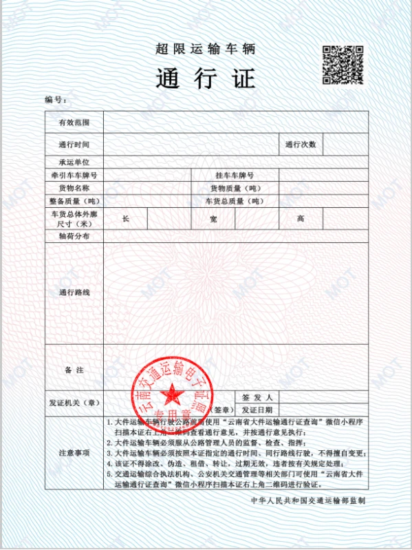 1.本承运人道路运输经营许可证具有大型物件运输经营资质,所申报的车型、车号、车货总重及外廊尺寸等资料信息真实准确;行驶路线所涉收费站、匝道及桥梁隧道空间尺寸能够满足车辆正常通行。在车辆运输过程中自觉落实安全生产主体责任。