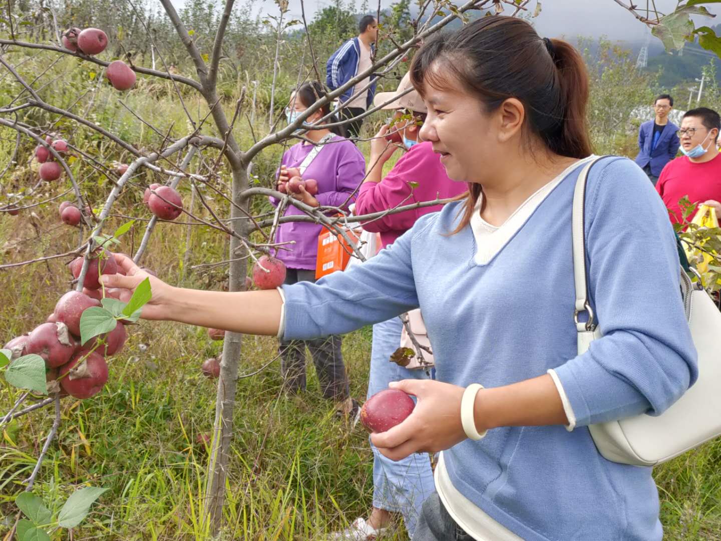 果园里充满欢声笑语,扶贫干部和他们的亲人采摘着新鲜的水果,体验着田园生活的快乐。