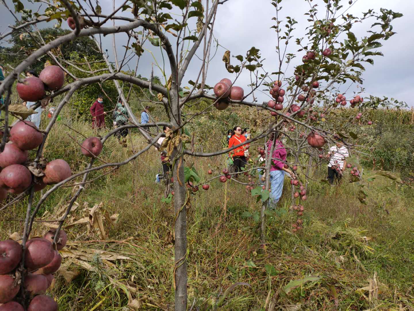 秋日早晨的阳光照耀在丰收的田野上,10月10日上午,嗅着瓜果的芳香,挂钩帮扶保和镇兰永村的县医院、县总工会等单位近百名干部带着亲属来到傈家山寨稗子洛村民小组采摘苹果、购买土鸡、鸡蛋等农特产品,开启体验式消费扶贫模式。