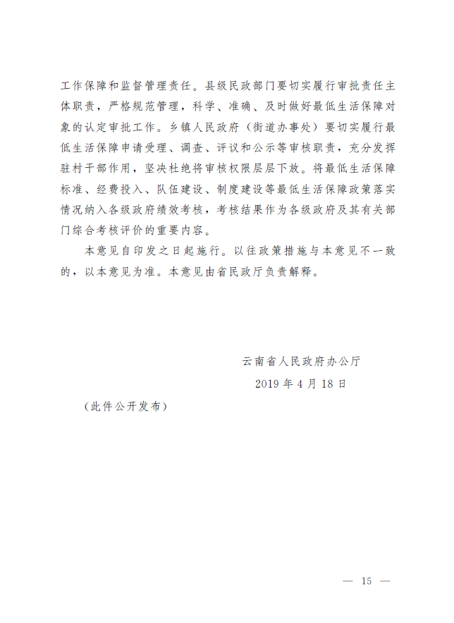 【保和镇】云南省人民政府办公厅关于进一步完善农村最低生活保障制度的意见