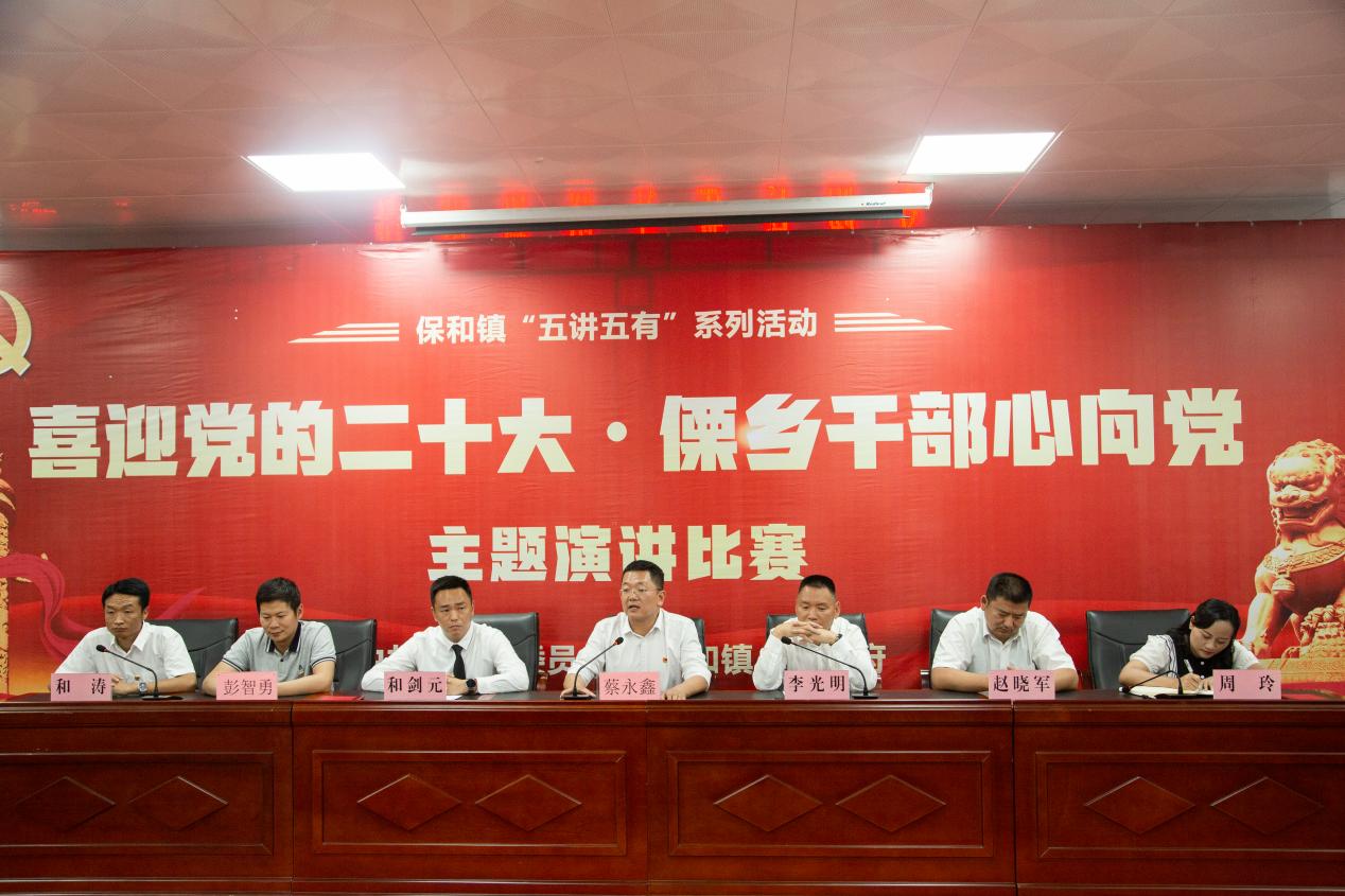 2022年6月20日晚,保和镇“五讲五有”系列活动之“喜迎党的二十大 傈乡干部心向党”主题演讲比赛决赛在保和镇四楼大会议室举行。县委常委、组织部长蔡永鑫,县委常委、保和镇党委书记李光明,县委组织部副部长彭智勇,保和镇党委、政府领导班子成员出席活动。经过初赛入选的14名选手参加决赛,由专业人员担任评委。