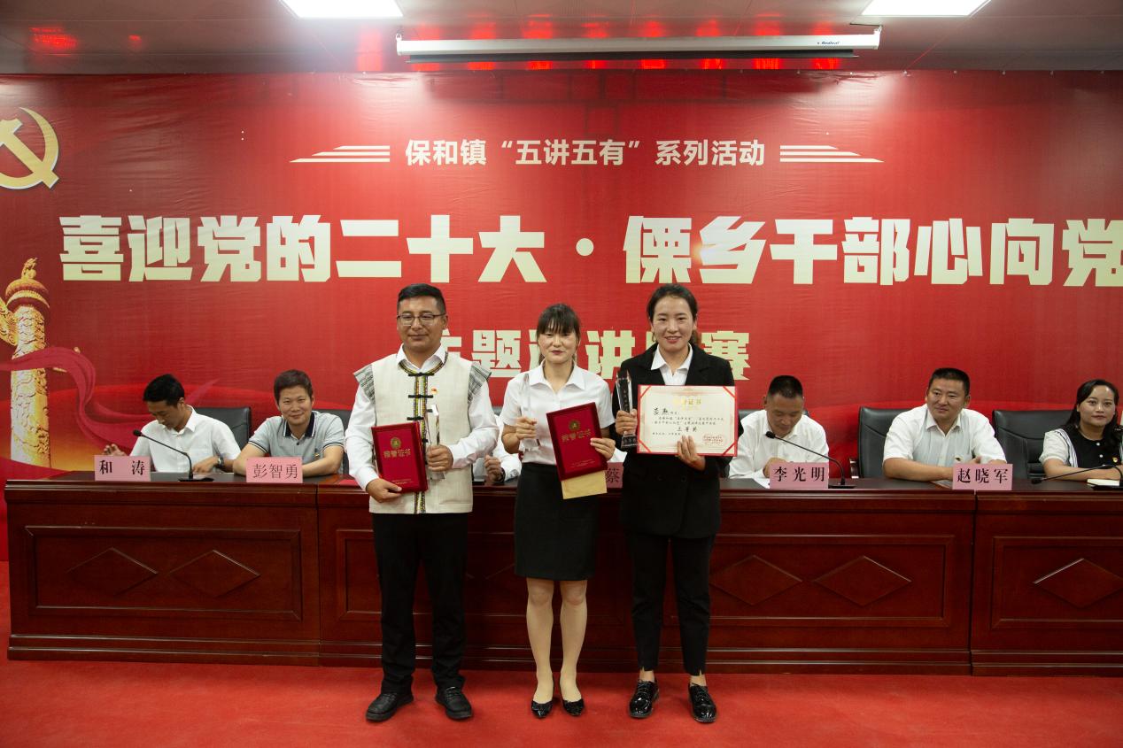 县委常委、组织部长蔡永鑫在颁奖仪式上对保和镇“喜迎党的二十大 傈乡干部心向党”主题演讲比赛活动的开展给予充分的肯定,对获奖选手表示热烈的祝贺。并表示此次活动的开展充分展示新时代保和镇干部职工新风采,为保和镇工作高效、高质量发展凝聚力量。