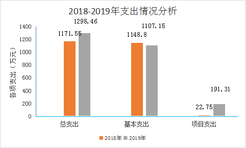 维西县疾控中心2019年度支出合计1,298.46万元。其中:基本支出1,107.15万元,占总支出的85.27%;项目支出191.31万元,占总支出的14.73%;上缴上级支出、经营支出、对附属单位补助支出共0万元,占总支出的0%。与上年对比,总支出较上年增加126.91万元,增幅为10.83%,其中,基本支出减少41.65万元,降幅为3.63%,主要是因为本年度有3人达到正式退休年龄并办理相关手续,其相关经费纳入社保局核算,因此,对应的基本支出较上年有所下降;项目支出增加168.56万元,增幅740.92%,主要原因是本年度新增水质监测等工作,其对应的项目资金较上年大幅提升。