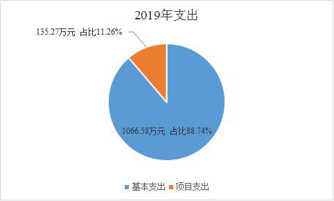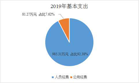 2019年度基本支出中包括基本工资、津贴补贴等人员经费支出985.31万元占基本支出的92.38%;办公费、印刷费、水电费、办公设备购置等日常公用经费81.27万元占基本支出的7.62%。