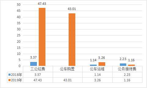 2019年度一般公共预算财政拨款“三公”经费支出决算中,因公出国(境)费支出0万元,占0%;公务用车购置及运行维护费支出46.27万元,占97.55%;公务接待费支出1.16万元,占2.45%。具体情况如下: