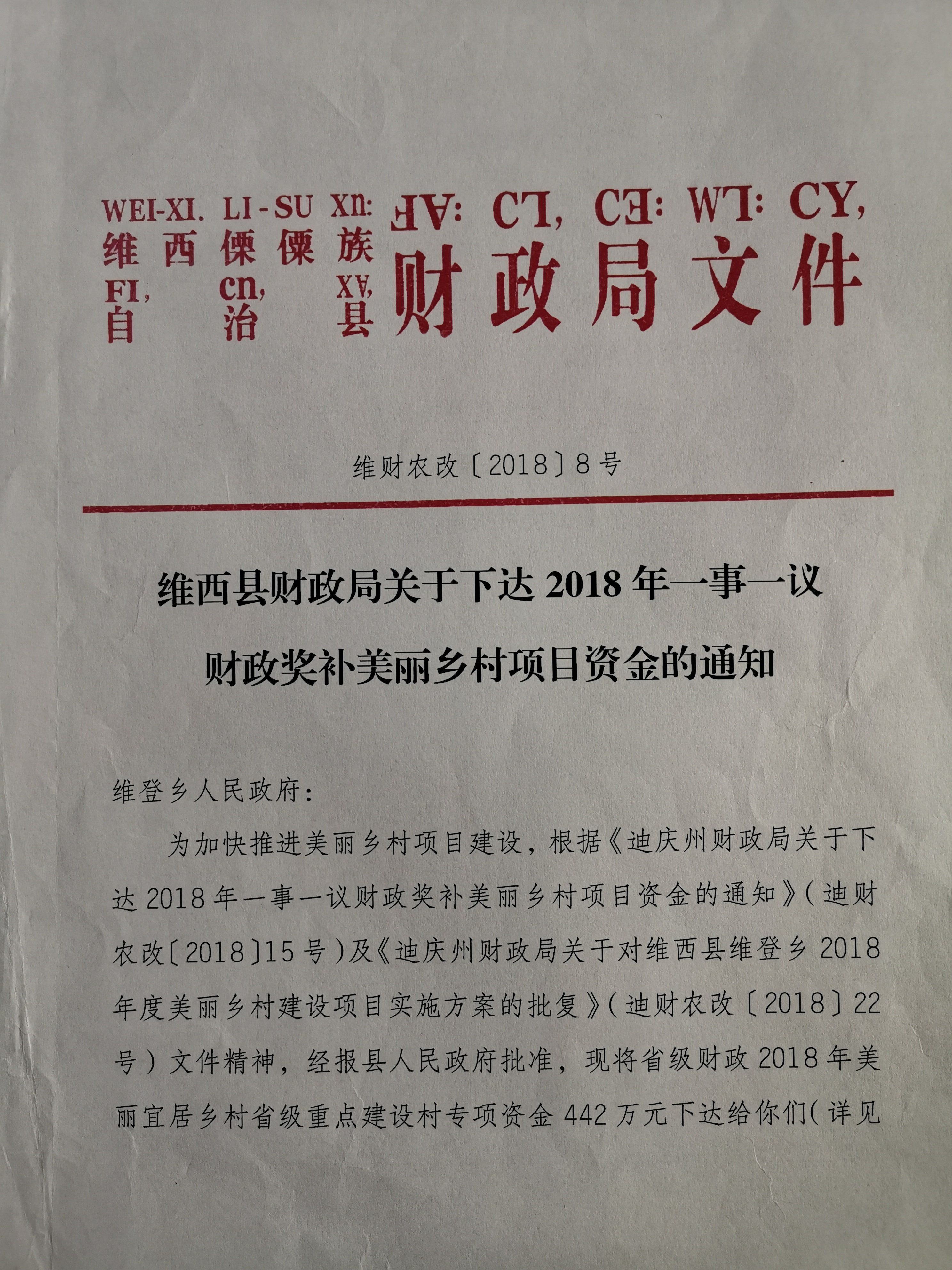 【信息公开】维西县财政局关于安排双蛋白食物精准营养干预健康扶贫试点工作经费的通知