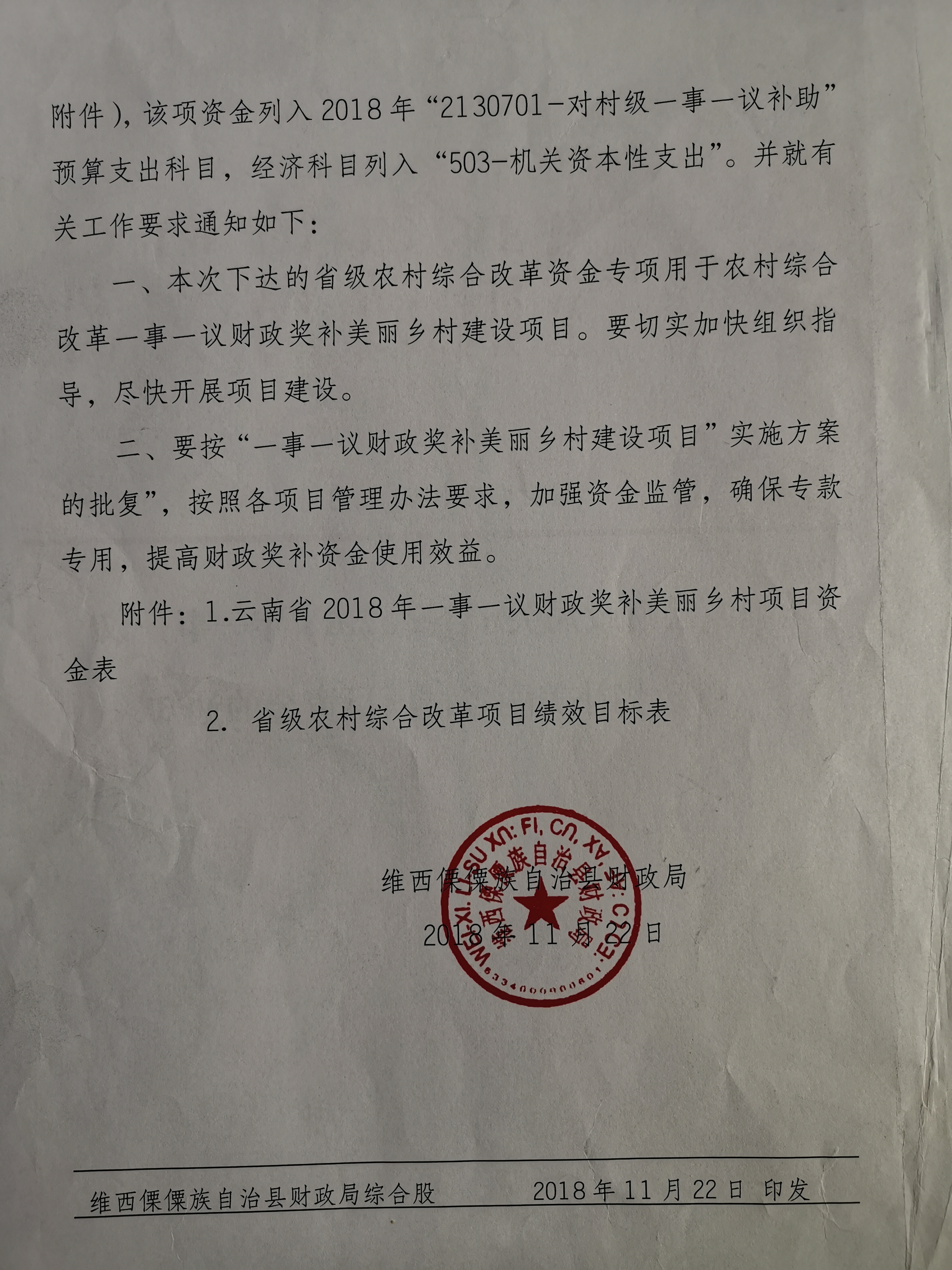 【信息公开】下达2018年一事一议财政奖补美丽乡村项目资金的通知