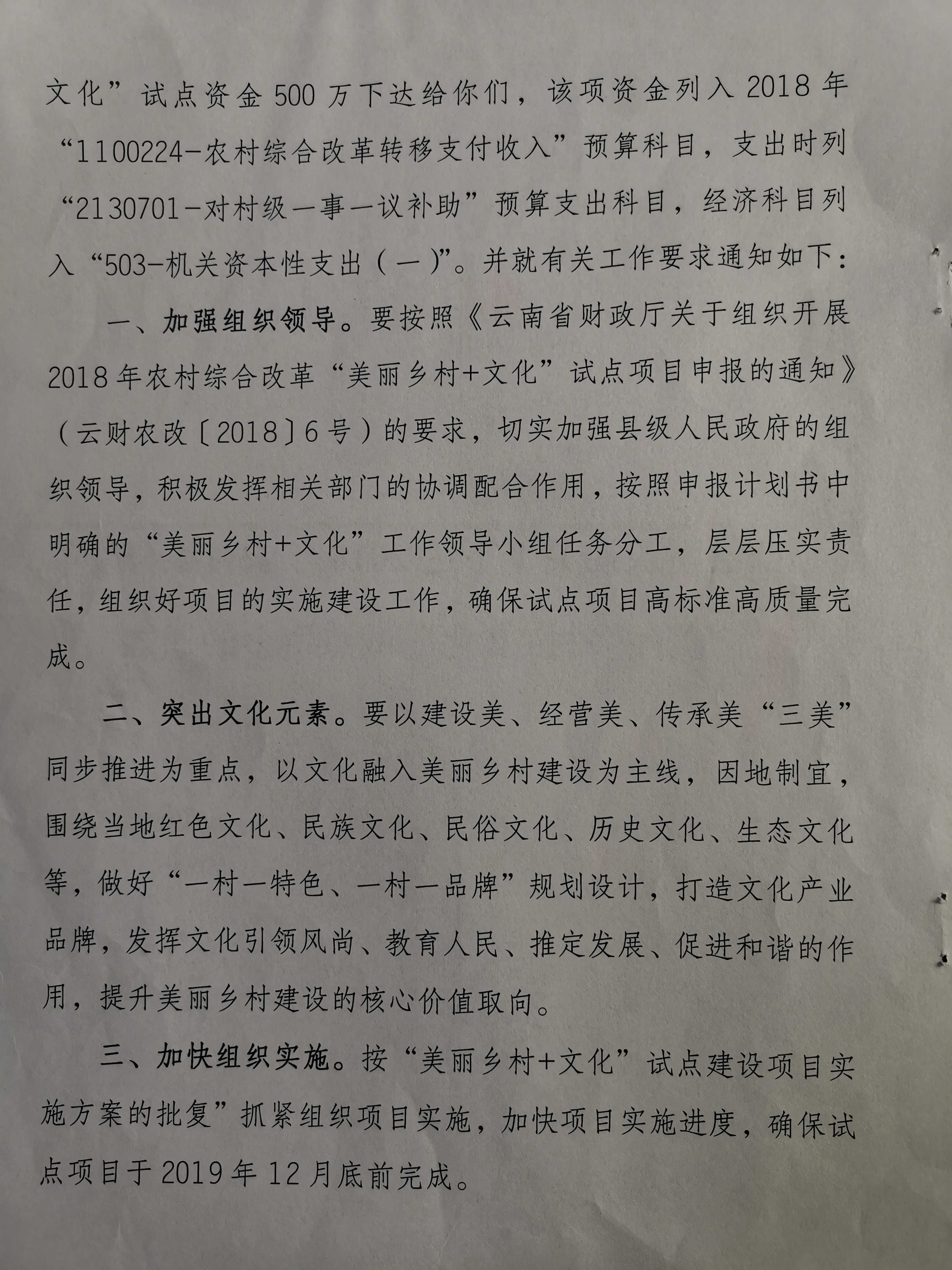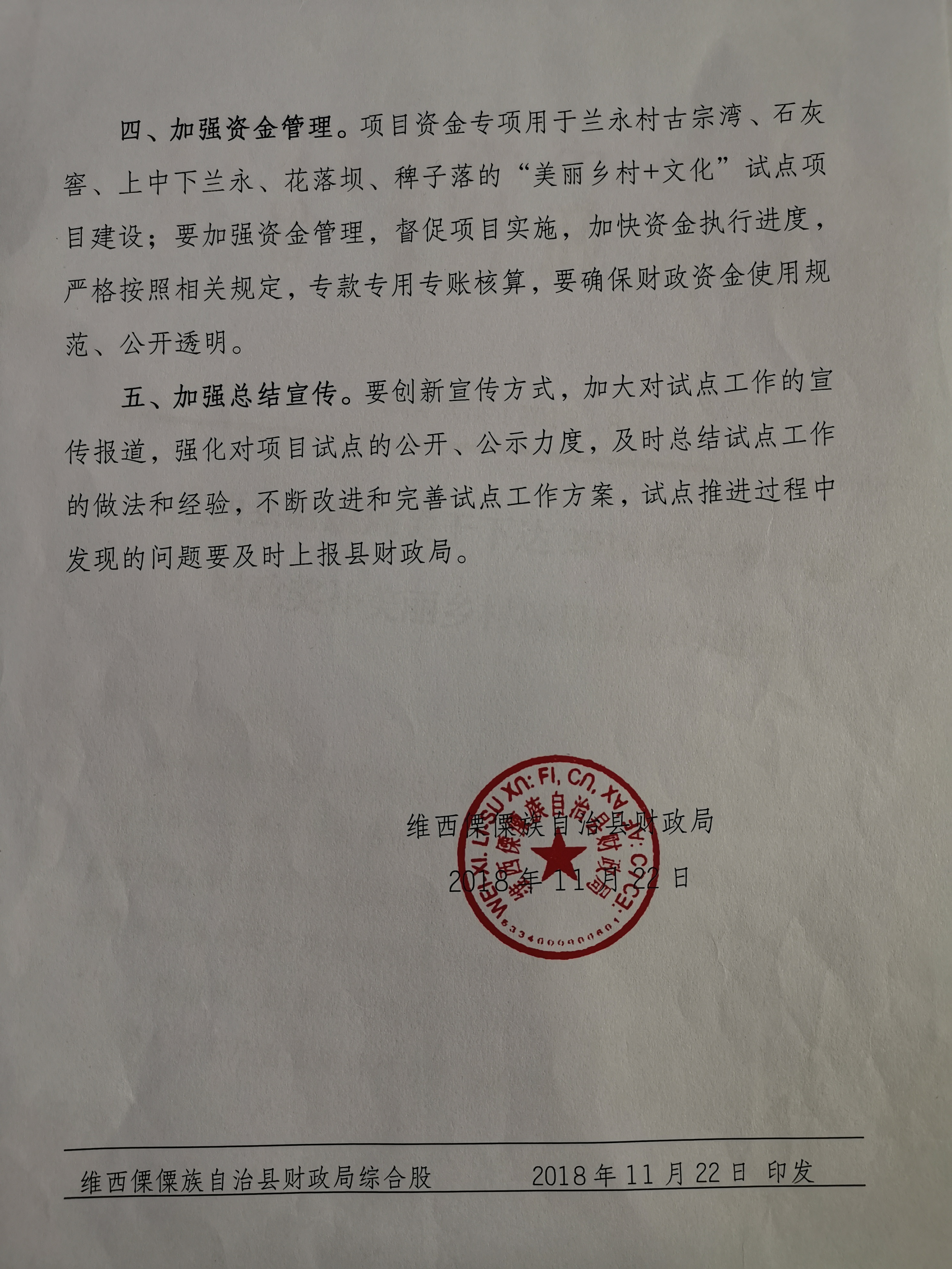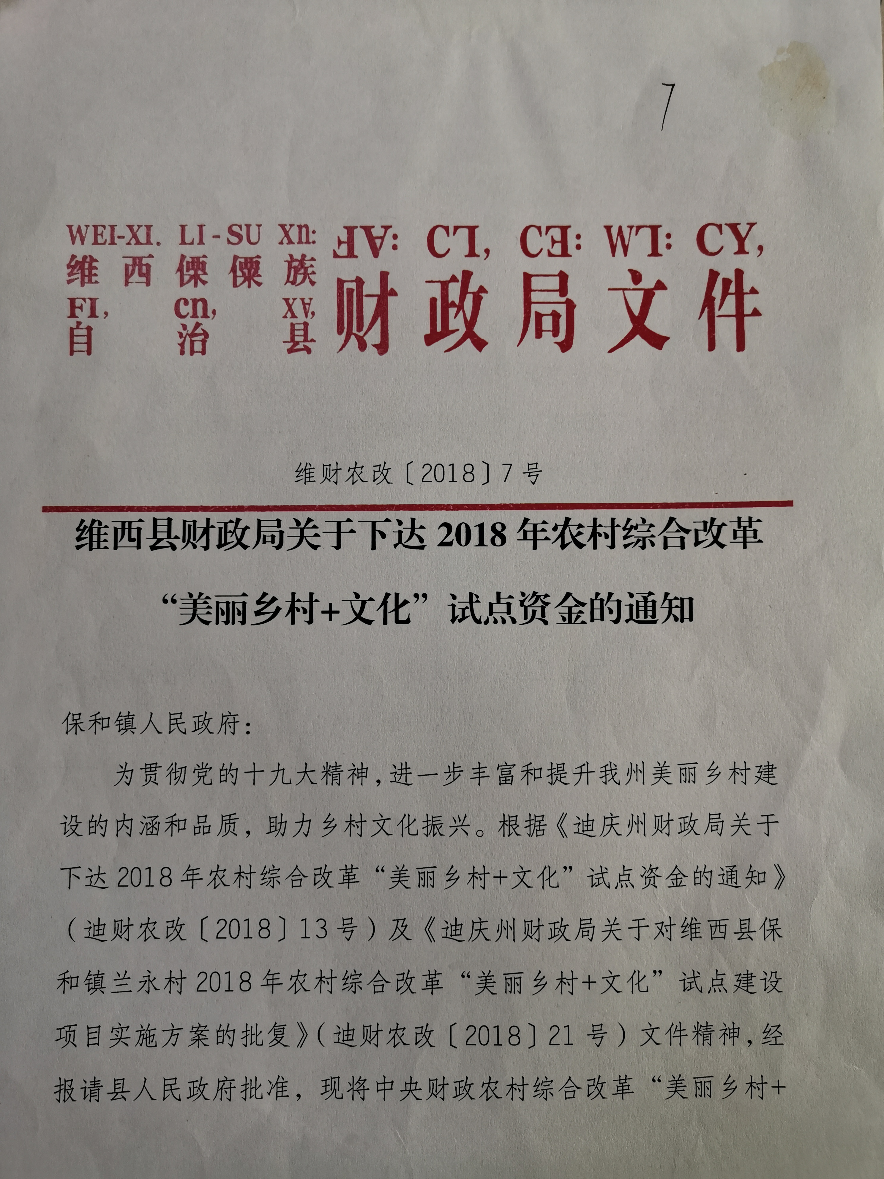 【信息公开】下达2018年农村综合改革“美丽乡村+文化”试点资金的通知