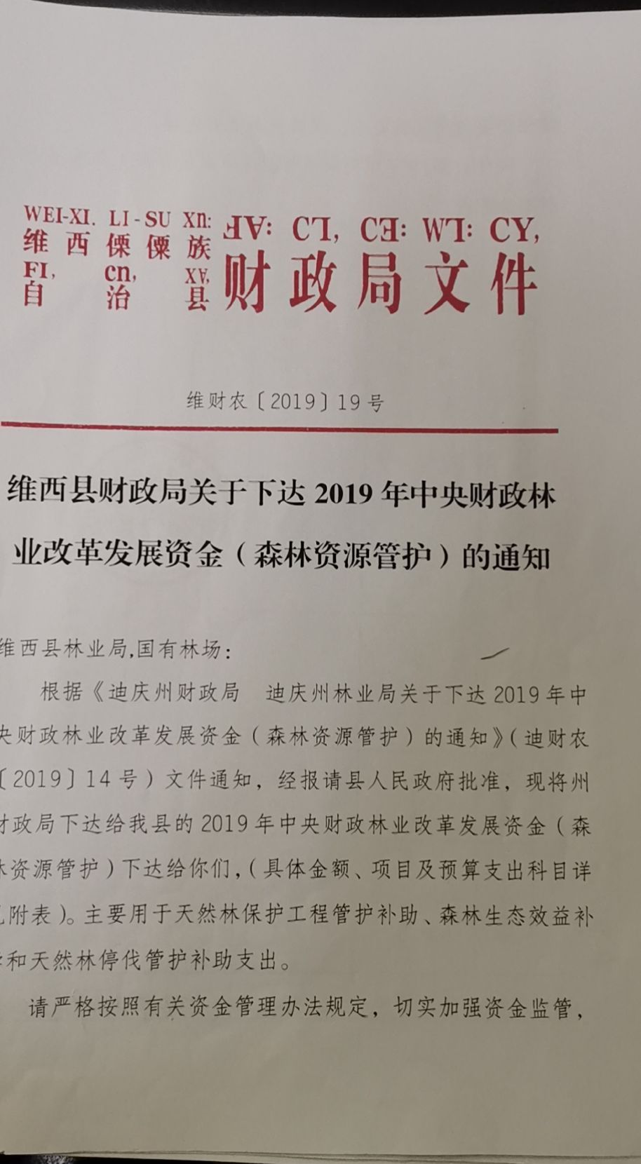 【信息公开】关于下达2019年中央财政林业改革发展资金(森林资源管护)的通知