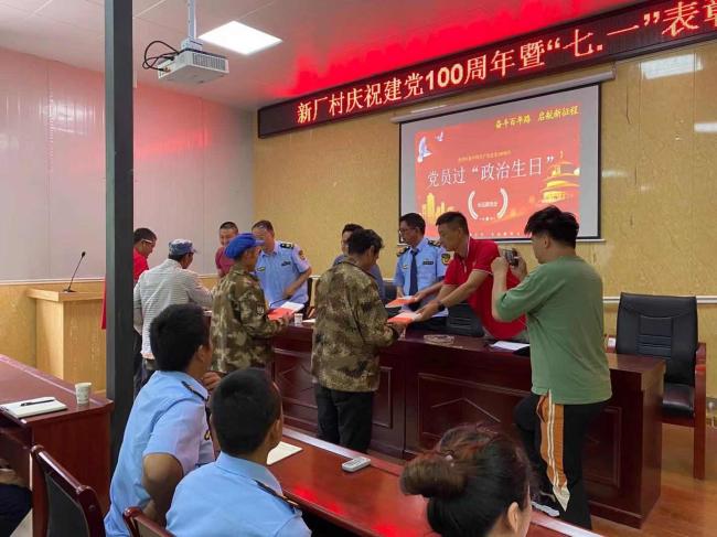 7月2日:与中路乡新厂村开展支部联建活动,共庆华诞。升国旗唱国歌;与会人员齐唱《没有共产党就没有新中国》;全体党员重温入党誓词。