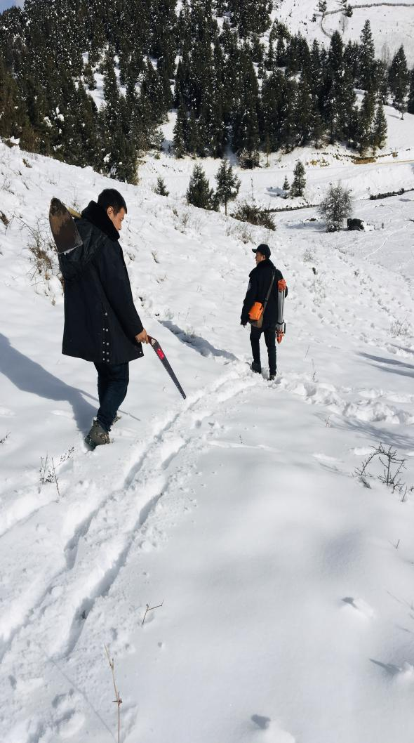 外业调查原本就是一项耗时耗力的工作,普查组需要将罗盘、测高杆、手锯、皮尺等各种工具长途跋涉带到山上,加之先前的降雪,使得路面湿滑,开展相关工作难度随之增加。为按时、按质、按量完成普查工作,我县普查组成员团结一致、分工明确,清除积雪,克服困难,按照流程打样地、测量、取样。现阶段,我县的森林火灾风险普查外业调查工作有序推进中。