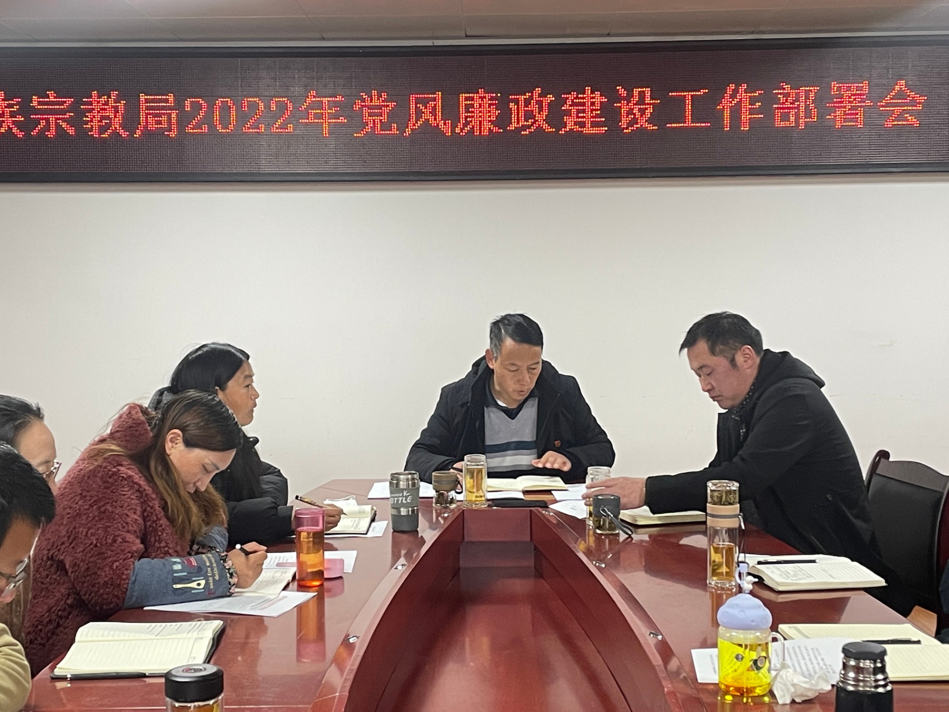 局长余海军对部门2022年工作要点作了安排部署。一是继续深入学习贯彻落实习近平总书记考察云南重要讲话、中央民族工作会议、全国宗教工作会议、中央第七次西藏工作座谈会、省委第三次涉藏工作会议、省委省政府迪庆现场办公会和州第九次、县十四次党代会精神,按照县委、县政府的统一部署,深入少数民族聚居地区、宗教活动场所持续广泛开展爱国主义、社会主义核心价值观、民族团结进步宣传教育活动,使“两个共同”“三个离不开”“五个认同”及中华民族共同体意识更加深入人心并逐渐成为人们的自觉行动。二是通过党政齐抓共管、精神家园共建、发展成果共享、和谐关系共创、民族事务共治、示范创建共促6项重点工程,深入开展全国民族团结进步示范县创建工作;推进铸牢中华民族共同体意识项目化、实体化、工程化,将年度“十百千万示范创建”工程、少数民族优秀传统文化保护传承项目、民族文化“双百”工程项目建设落实落地;积极探索推进城市民族管理工作,建立健全有利于构建互嵌式社会结构的体制机制,创造共居共学共事共乐的社会环境,为我县“十四五”期间创建成为全国民族团结进步示范县打牢基础。三是坚持以“导”的态度对待宗教,深入推进我国宗教中国化。加强宗教教职人员教育引导工作,不断加强宗教领域风险防控工作,系统性、规范性做好宗教法治管理工作,不断提升宗教工作规范化、制度化、法治化水平。四是进一步加强部门作风建设,维护部门利益,加强日常管理,团结一致,形成良好的部门工作氛围,力争取得更大的工作成绩。最后,就近期宗教领域“迎接党的二十大一学四抓三促进”专项活动作了安排,要求全力抓好宗教领域中央、省、州、县重要会议精神宣讲,三月驻寺维稳、矛盾纠纷排查化解、公开揭批教育、涉藏重点人员管控等工作。做好宗教活动场所消防、食品卫生、工程建设、外来人员管理、疫情防控等安全工作。