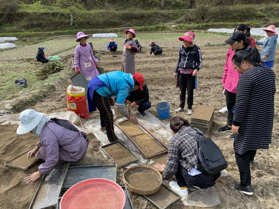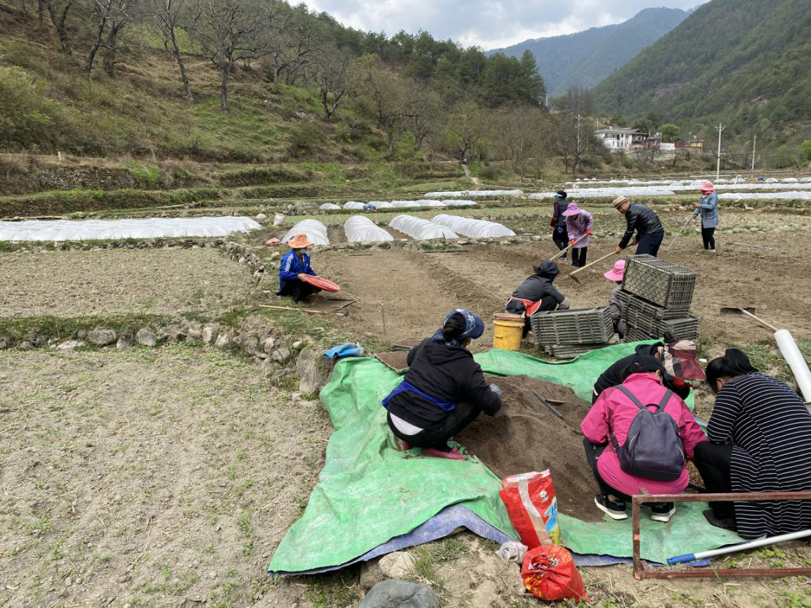 指导组一行在塔城镇启别村查看了正在进行播种的、已经播撒好种子的秧田,对农户育秧培土配制比例、播种浇水、秧田管理要点等技术进行了指导秧苗育苗培训。