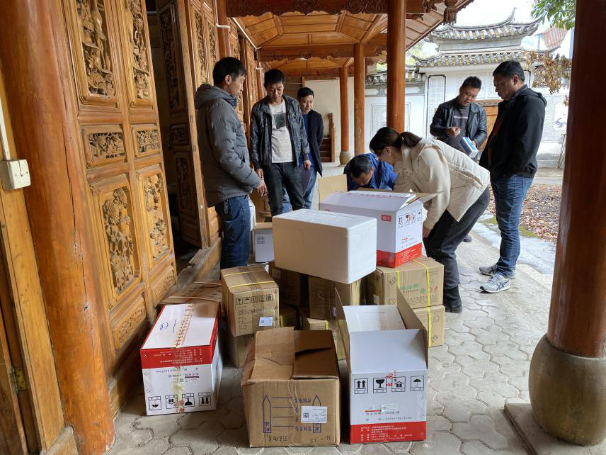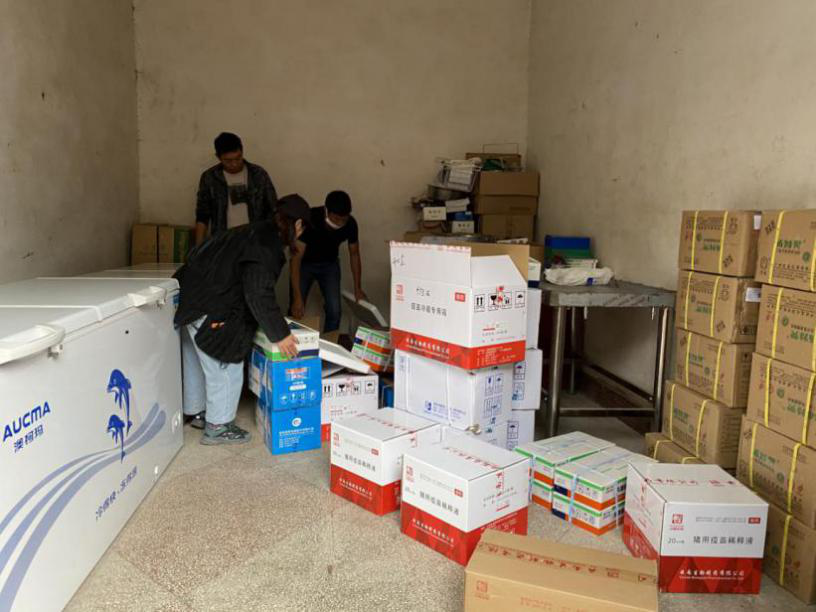 在疫苗及配套物资当面清点结束后,向各乡站交代了2021年重点工作:一是要求各个乡镇在4月20日以前完成免疫工作、按时上报免疫进度、做好养殖场是否在使用瘦肉精及非洲猪瘟疫苗的监管工作;二是村防疫员在疫苗注射过程中规范填写免疫档案及免疫户口册;三是认真做好消毒工作及规范储存疫苗、各乡镇兽医站要严格登记疫苗出入库;四是对村防疫员免疫注射过程要进行认真督促和指导、做好重大动物疫病防控工作材料的收集与整理。此次疫苗配送邀请迪庆州畜牧兽医科学研究院到我县配送消毒药品的业务人员及其疫苗运输车辆协助我县开展疫苗配送工作,避免了在配送过程中由于温度过高而对疫苗造成的影响,保证了疫苗的质量。