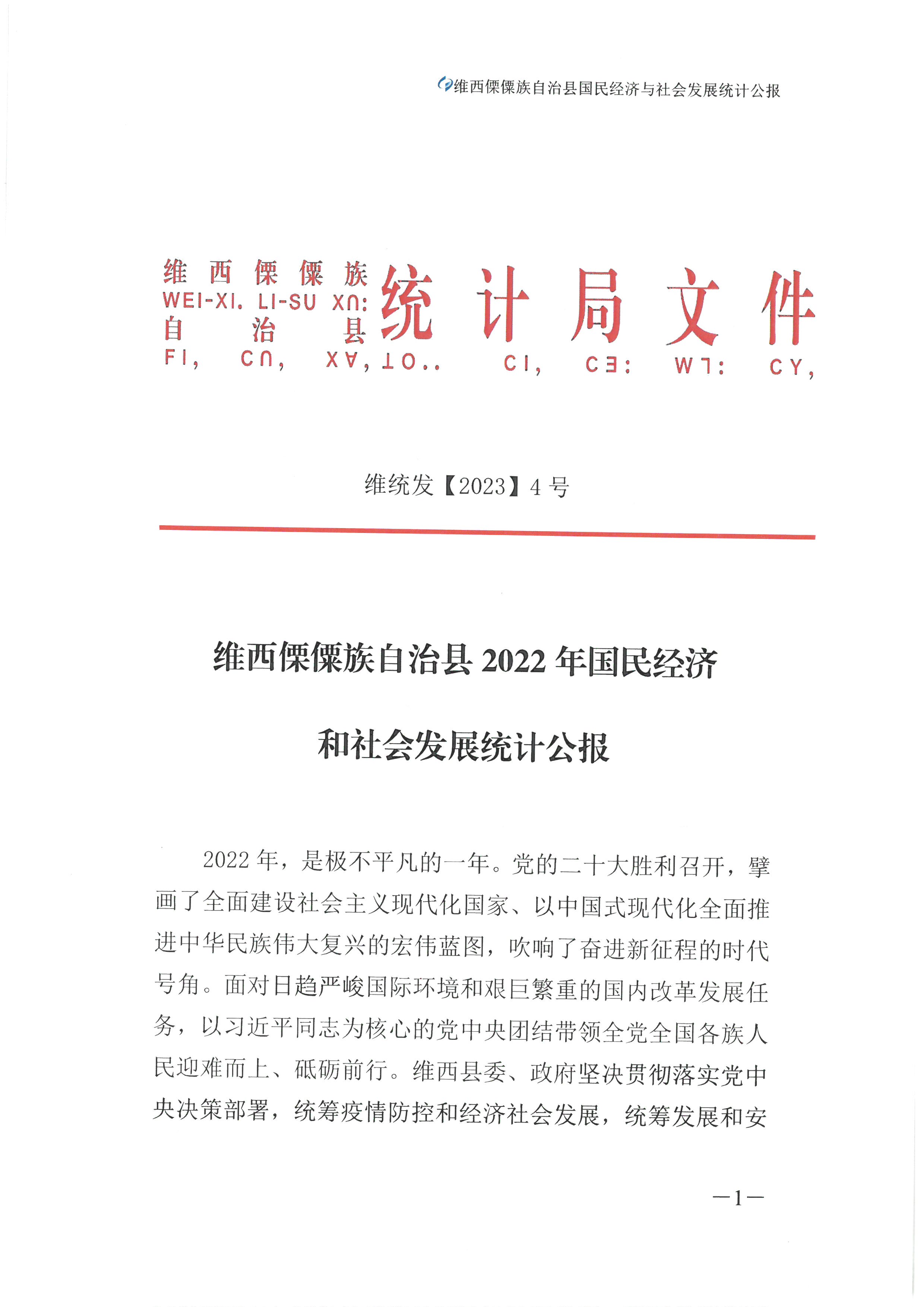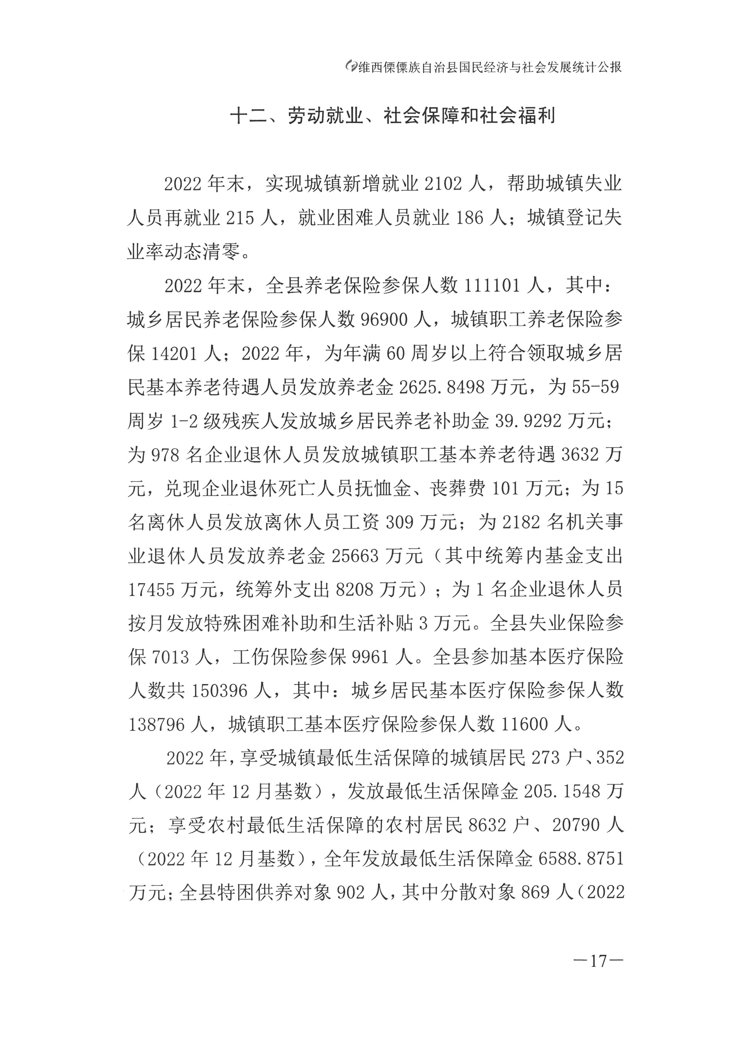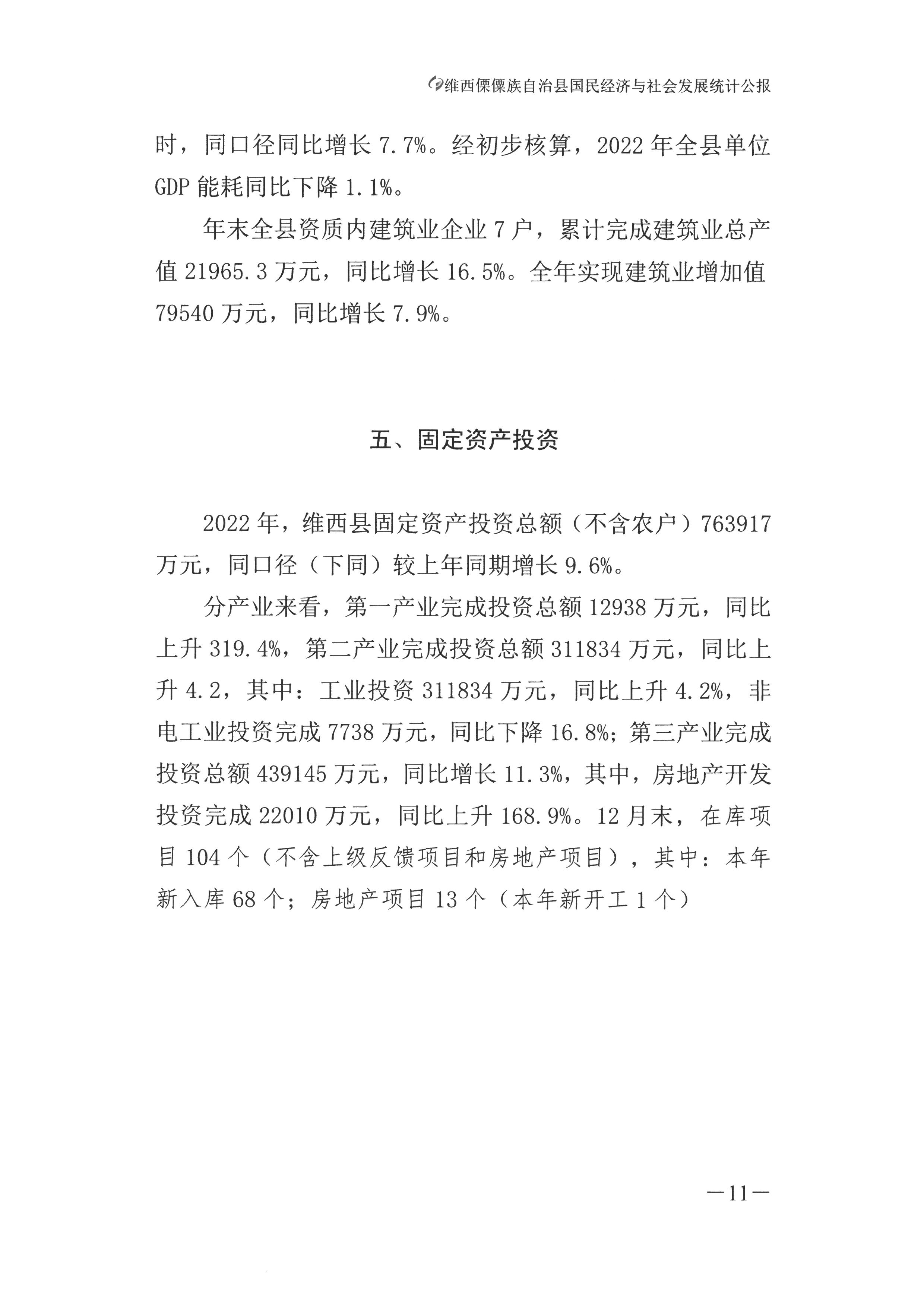 维西傈僳族自治县2022年国民经济和社会发展统计公报