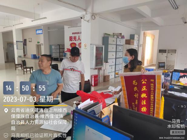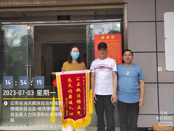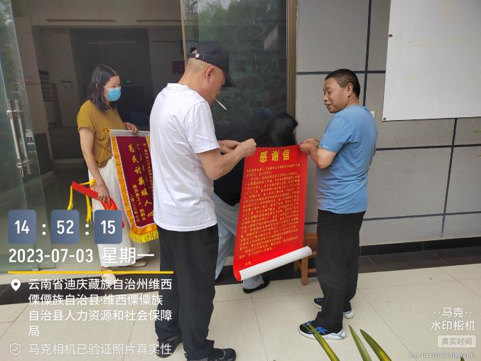 “事隔近两年,我对拿回工资都无望了,抱着试一试的心态跟你们反映,没想到维西县人社局劳动监察大队帮我拿回了血汗钱,真的非常感谢”。2023年7月3日陕西籍农民工赵某到维西县人力资源和社会保障局劳动保障监察大队表示感谢并赠予锦旗。简单朴实的话语,折射出人社工作的本质。人社工作涉及民生,和人民群众的切身利益息息相关,将根治欠薪工作做得更细致、更扎实,不断提高人民群众的获得感、幸福感始终是人社干部的工作重心!