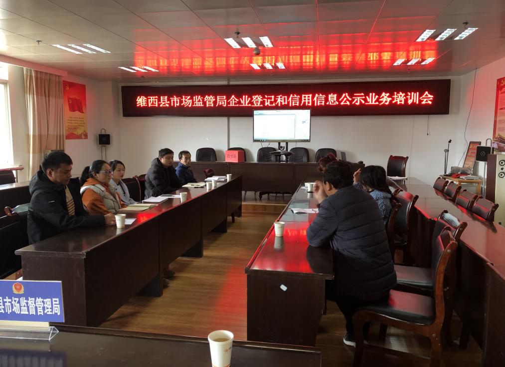 为进一步做好新版企业登记申请文书和提交材料的应用,以及2019年企业信用信息公示工作,维西县市场监督管理局组织辖区内中介机构、单位相关业务人员于2019年2月26日召开了维西县市场监管局企业登记及信用信息公示工作培训会。