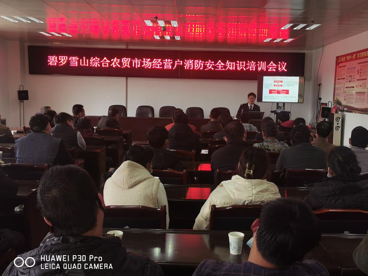 为了加强农贸市场消防安全管理工作,提高市场经营户及外来务工人员的消防安全意识和应对突发情况的应急能力,预防各种灾害的发生,2021年11月25日,维西县市场监管局组织碧罗雪山综合农贸市场内经营户开展消防安全培训活动。