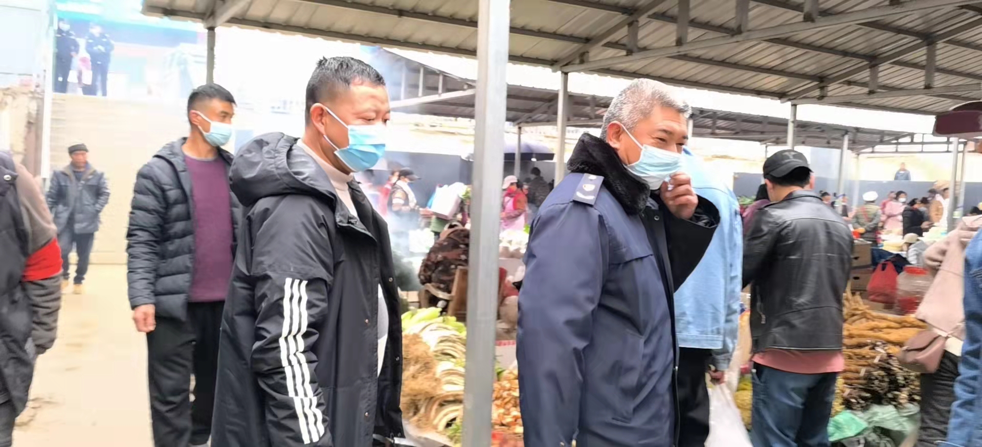 贸市场、零摊等地认真开展检查,重点查看市场疫情防控措施落实情况、活禽禁售是否执行到位、是否存在野生动物交易、市场安全管理等工作。一是重点检查经营主体资质,检查各农贸市场内经营者是否取得营业执照、食品经营许可证,是否在许可范围内经营;二是检查食品索证索票,执法人员认真查看水产品、禽肉类食品摊位索证索票和进货台账,对未履行索证索票义务的经营者进行教育引导,并督促其限期改正;三是继续规范市场经营行为,要求经营者做好明码标价,防止出现价格欺诈、囤积居奇、哄抬价格等不正当价格行为。同时,督促市场开办方严格落实好通风、消毒、测温、扫码、戴口罩防疫“三件宝”要求,控制进入市场人员流量,加强疏导提醒,保持排队间距,防止市场内人员聚集。