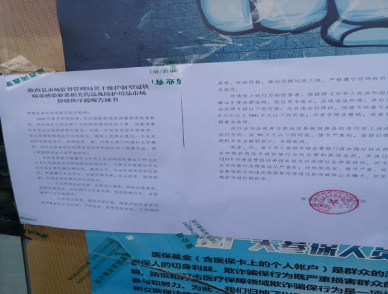 同时,疫情防控事关人民群众利益和生命健康安全,维西县市场监管局再次提醒各经营单位和个体经营户要引以为戒,把《维西县市场监督管理局关于维护新型冠状病毒感染肺炎相关药品及防护用品市场价格秩序提醒告诫书》明确的禁止哄抬价格、囤积居奇等价格违法行为作为经营和销售商品不可触碰的红线,切不可心存侥幸,自觉增强社会责任感,切实加强价格自律。遵循公平、合法、诚实信用定价原则,为消费者提供价格合理的商品和服务。