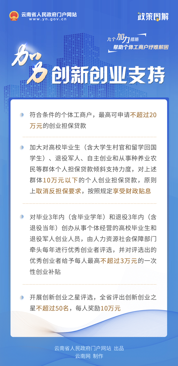 图解《云南省人民政府办公厅关于印发云南省扶持个体工商户 纾难解困工作方案的通知》
