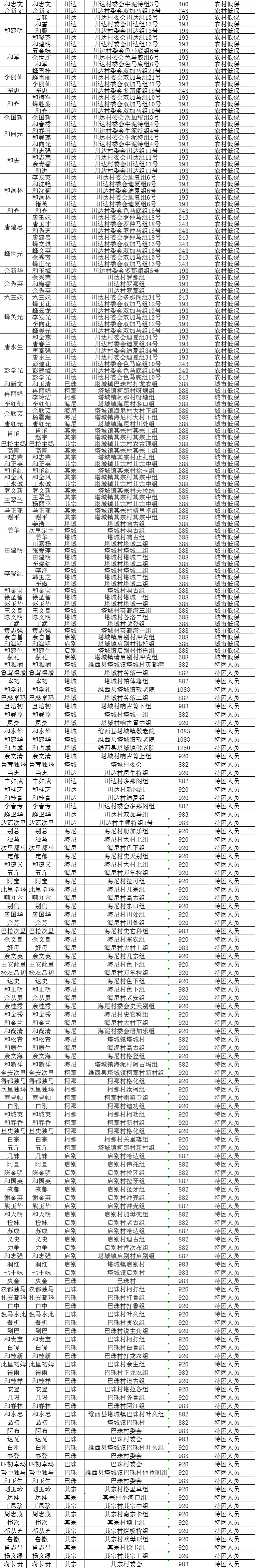 根据《云南省人民政府办公厅关于进一步完善农村最低生活保障制度的意见》(云政办发〔2019〕42号)文件要求,现将我镇2021年2月城乡低保及特困人员名单公示如下,如有异议,请向塔城镇人民政府反映。