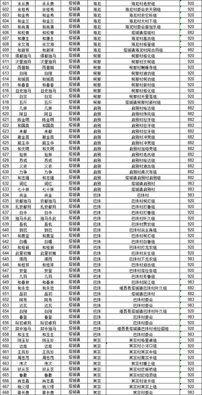 根据《云南省人民政府办公厅关于进一步完善农村最低生活保障制度的意见》(云政办发〔2019〕42号)文件要求,现将我镇2021年3月城乡低保及特困人员名单公示如下,如有异议,请向塔城镇人民政府反映。