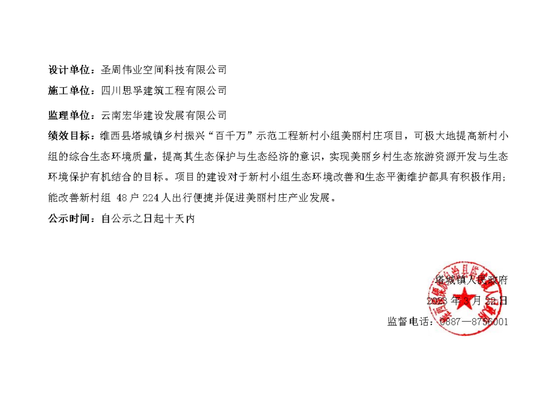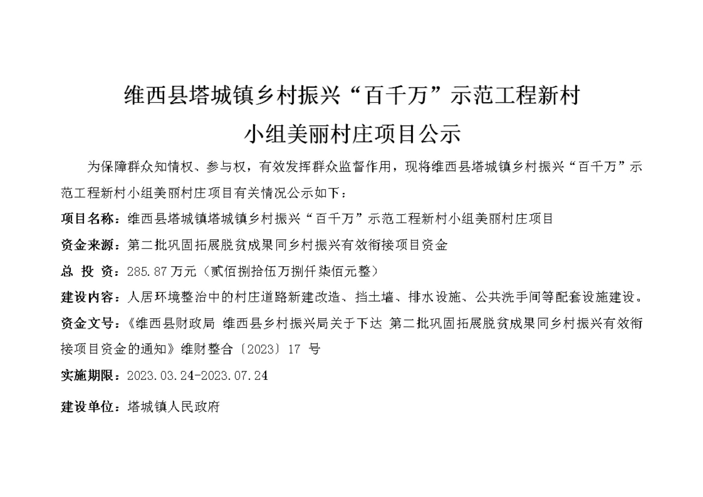 维西县塔城镇乡村振兴“百千万”示范工程新村 小组美丽村庄项目公示