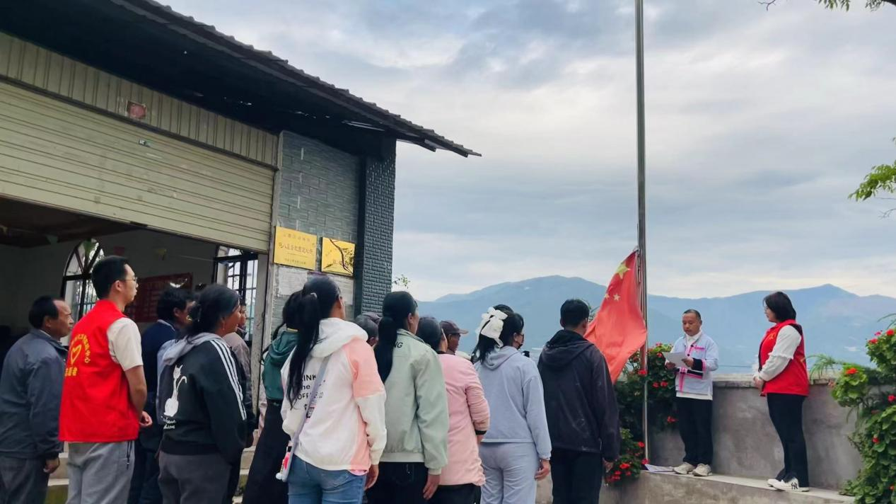 活动开始后,工作队员采用群众听得懂,喜闻乐见的形式组织大家进行了升国旗礼仪培训,为大家讲解升国旗的礼仪并做示范。随后,全体党员及工作队员带头领唱国歌,伴随着全体人员齐声合唱的国歌声,国旗缓缓升起。
