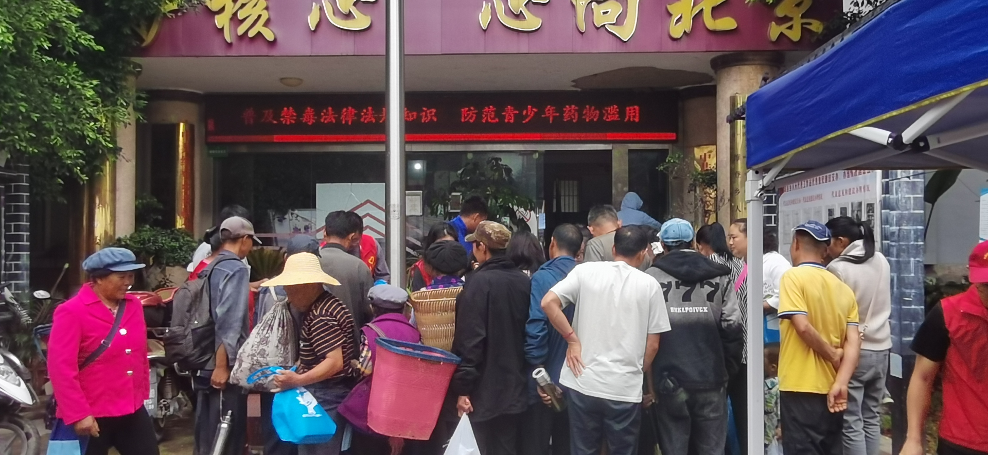 工作人员充分利用“线上+线下”相结合的宣传方式,开展形式多样的禁毒宣传教育活动,广泛动员群众共同参与禁毒工作。在乡镇赶集日期间,工作人员通过张贴布标、发放宣传材料、网格员入户走访、禁毒知识宣讲、微信群转发禁毒宣传片等方式,推动禁毒法治观念深入人心,同时鼓励大家争当禁毒的宣传员和监督员,向身边的亲朋好友宣传普及禁毒知识和相关法律法规,引导广大群众自觉远离毒品、拒绝毒品,全力筑牢全民识毒、防毒、拒毒思想防线。