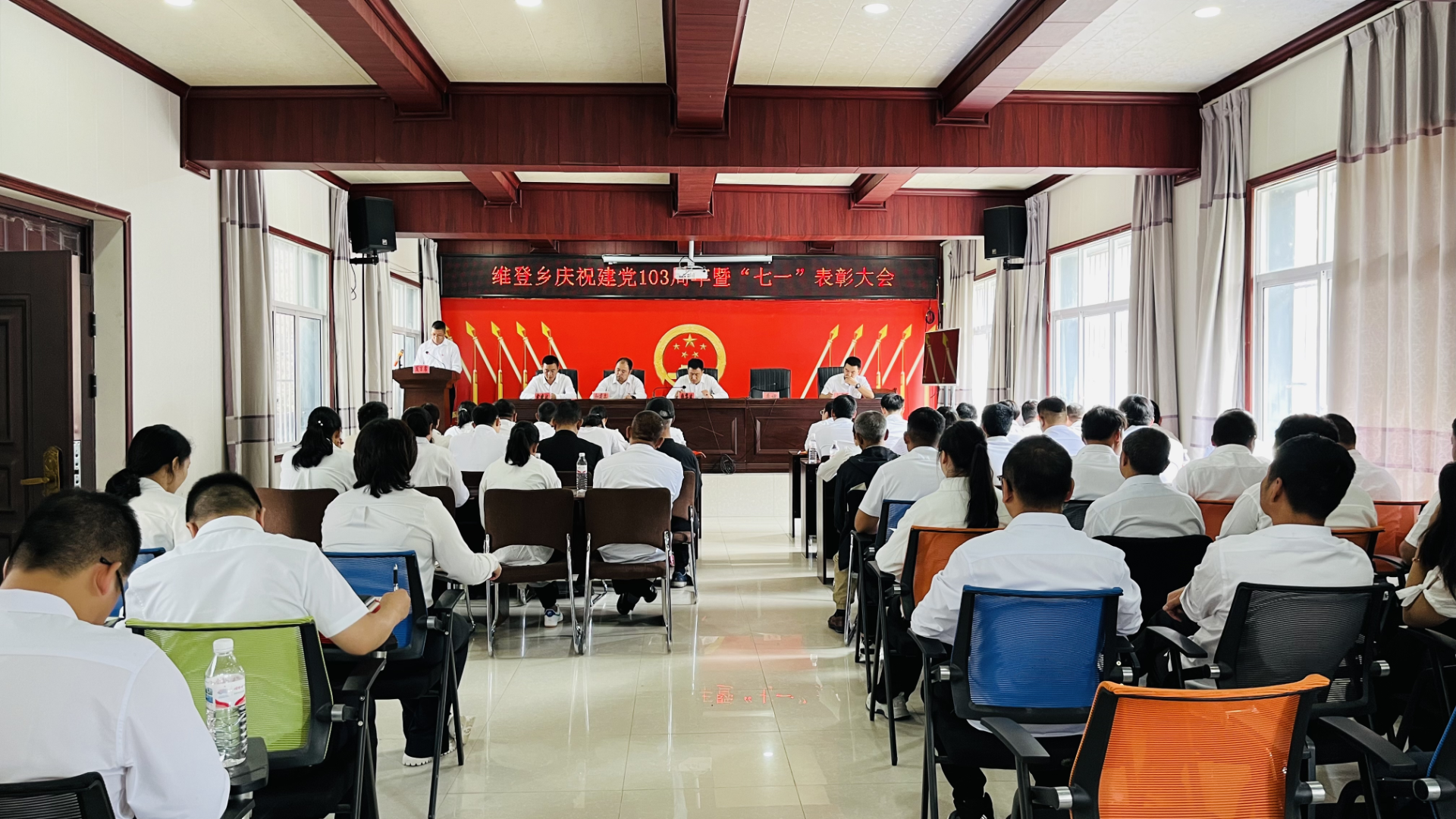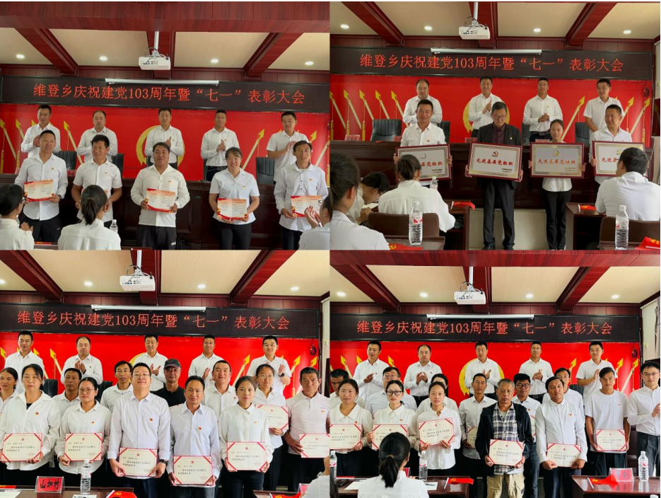为庆祝中国共产党成立103周年,弘扬伟大建党精神,赓续红色精神血脉,推进党纪学习教育,汇聚强大奋进合力,维登乡组织开展“七·一”系列活动,全体机关党员、各村总支书记、副书记、受表彰对象参加了此次活动。